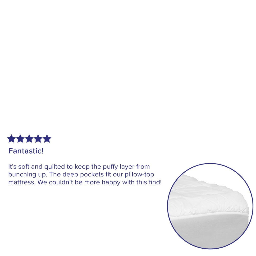 Add a plush, protective layer to your bed for cooler, cleaner, and more comfortable sleep. This quilted cotton-top mattress pad combines soft cushioning with practical protection—absorbing light moisture and oils, inhibiting common allergens, and stretching to fit deep mattresses—so you can extend the life of your mattress and sleep more soundly night after night.