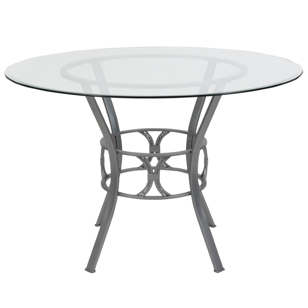 Elevate your dining space with a refined centerpiece that blends modern elegance and practical design. This round glass dining table brings a luminous presence to breakfasts, dinner parties, or casual gatherings—its clear tempered glass top and silver metal frame create an open, airy feel while remaining sturdy enough for everyday use.