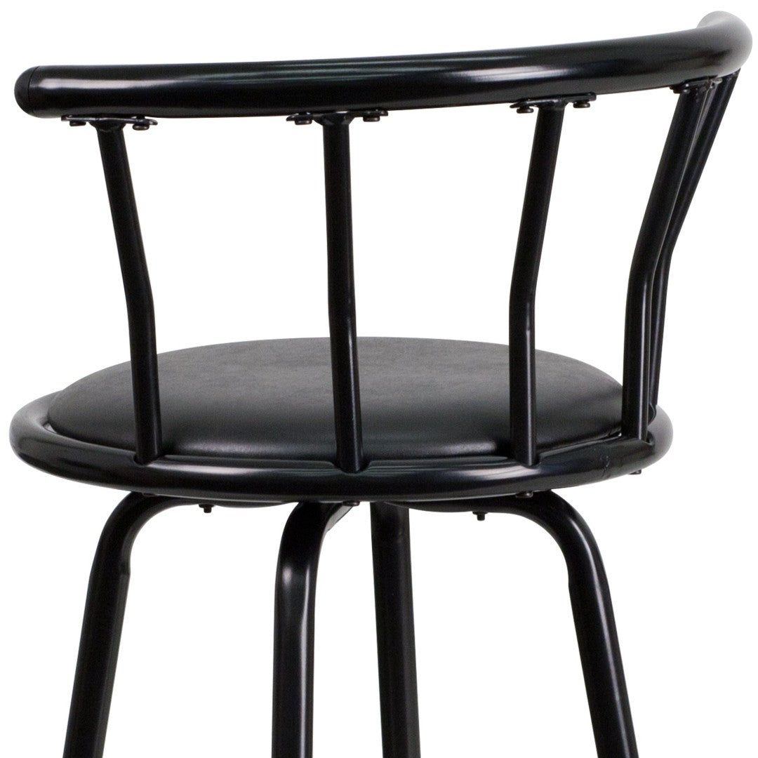 Bring classic sophistication and everyday comfort to your kitchen, breakfast bar, or home bar with this striking crown-back metal barstool. Clean lines and a glossy black finish create a versatile transitional look, while the padded vinyl swivel seat and supportive crown back make it comfortable for extended conversations or casual meals. Built for easy care and gentle on floors, this barstool combines durability and style in a compact footprint.