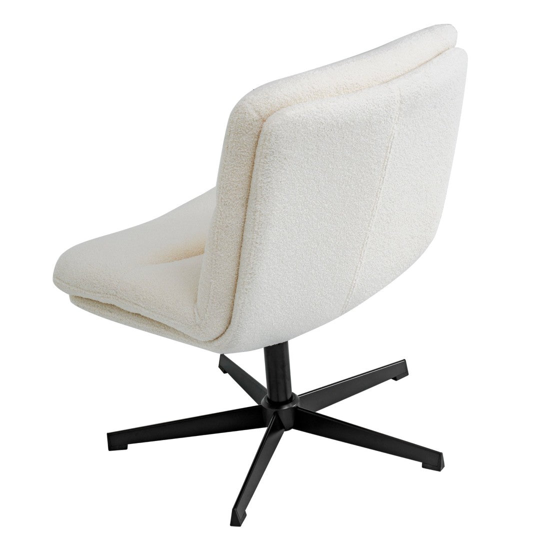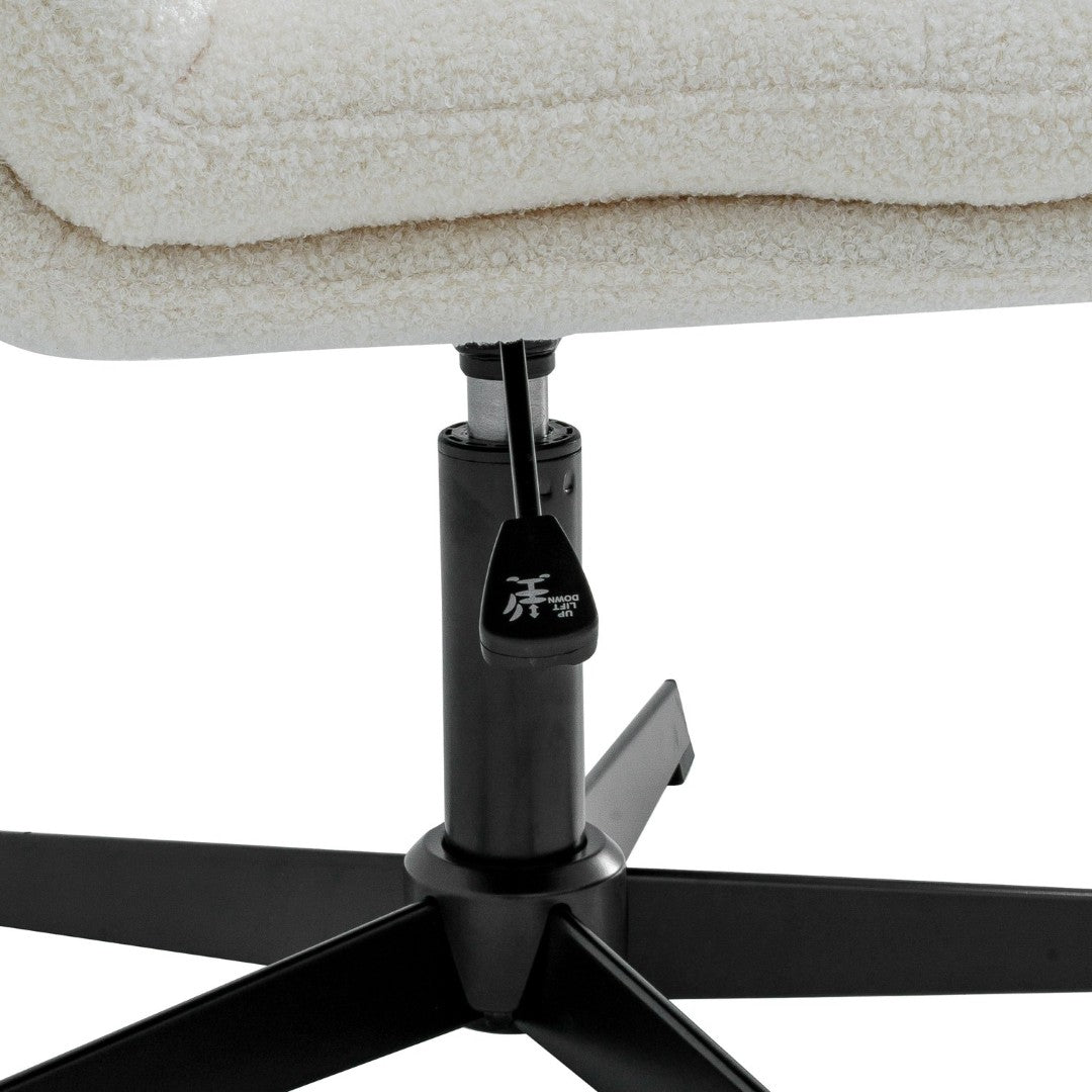 Bring contemporary comfort and commercial durability to your workspace with this wide mid-back task chair wrapped in plush cream faux shearling. Thoughtfully engineered for long shifts and collaborative environments, the chair pairs double-layer cushioning and ergonomic support with a sleek armless, stationary silhouette so you can move freely while maintaining proper posture. Its robust black metal frame, 360° swivel, and easy height adjustment make it a flexible choice for home offices, conference rooms, and busy workstations alike.