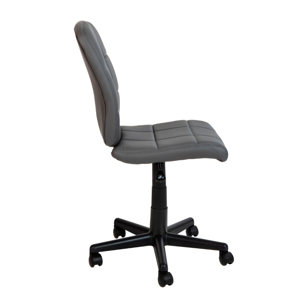 - Armless swivel task chair perfect for use in small office spaces, home offices and dorm rooms
