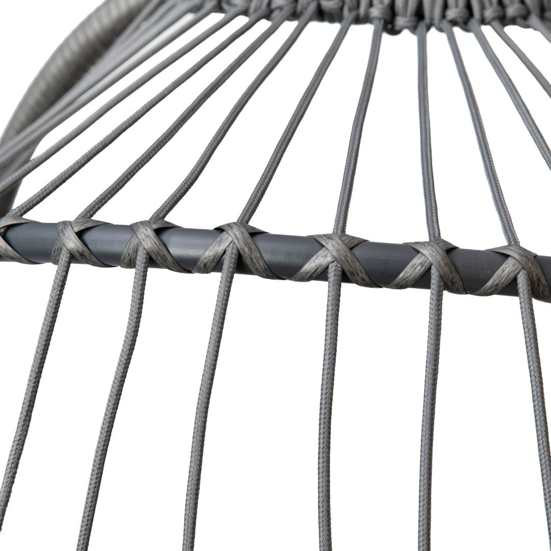 - Finish and materials: Gray polyethylene wicker, aluminum frame, steel stand, foam cushion fill, and polyester cushion covers