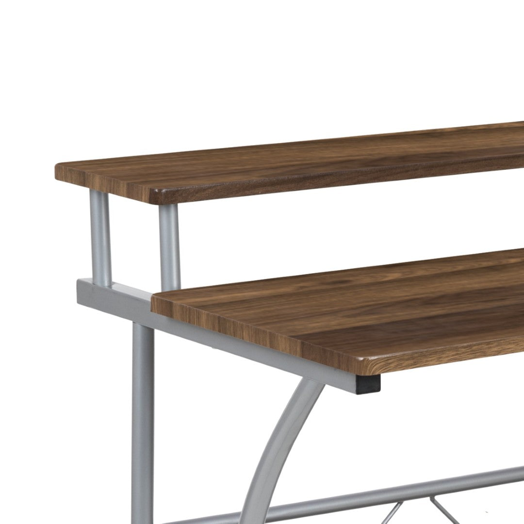 - Compact, efficient layout: Generous main work surface with a raised top shelf for monitors or décor and a lower shelf for a hard drive or supplies — ideal for small spaces.