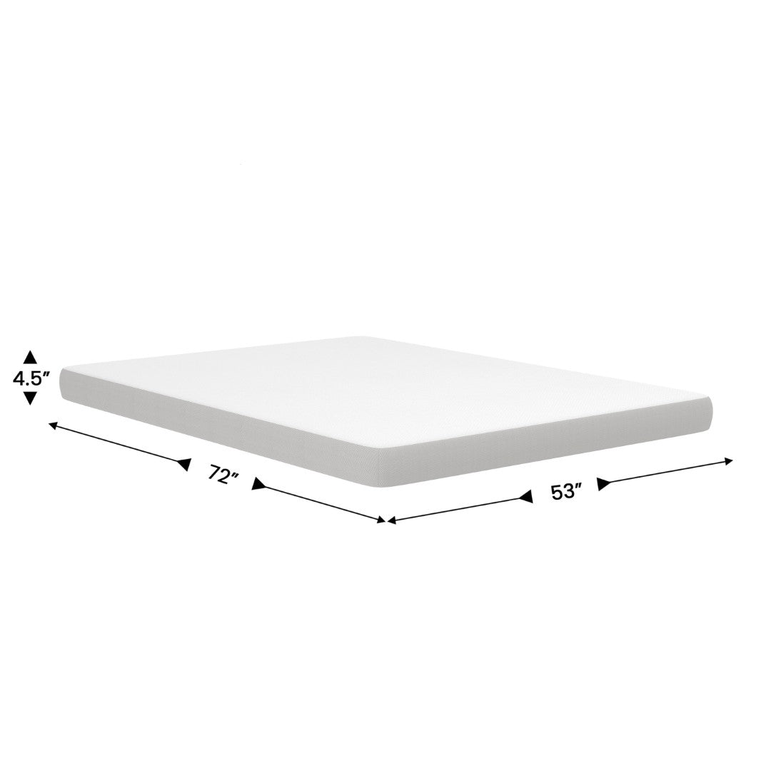 - Dimensions: 53" W x 72" D x 4.5" H — compact full size designed to fit sleeper sofas, couches, dorm beds, and compact living spaces