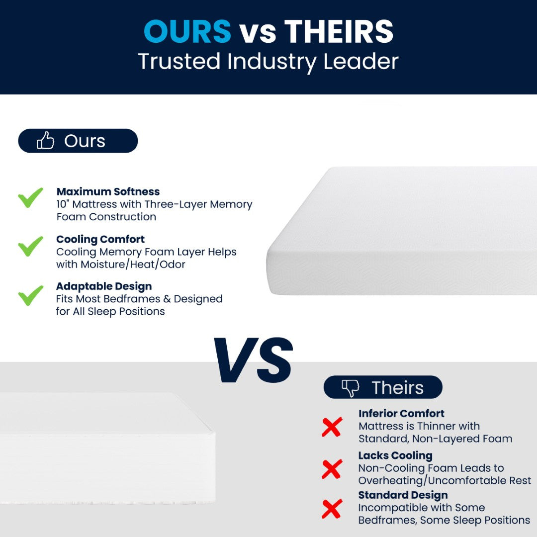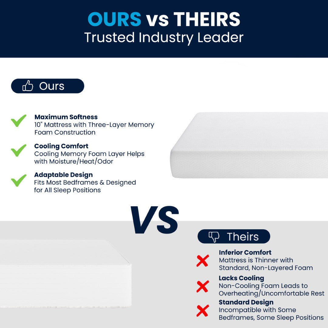 - Three-Layer Memory Foam 10" Mattress in a Box Fits Most Bedframes