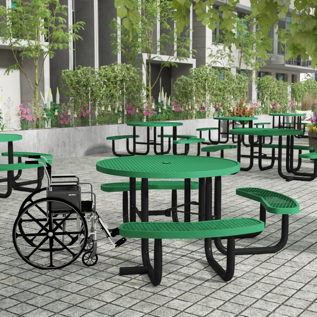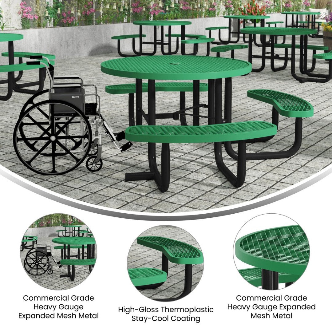 - Commercial Grade 46" Round Wheelchair Accessible Expanded Metal Picnic Table