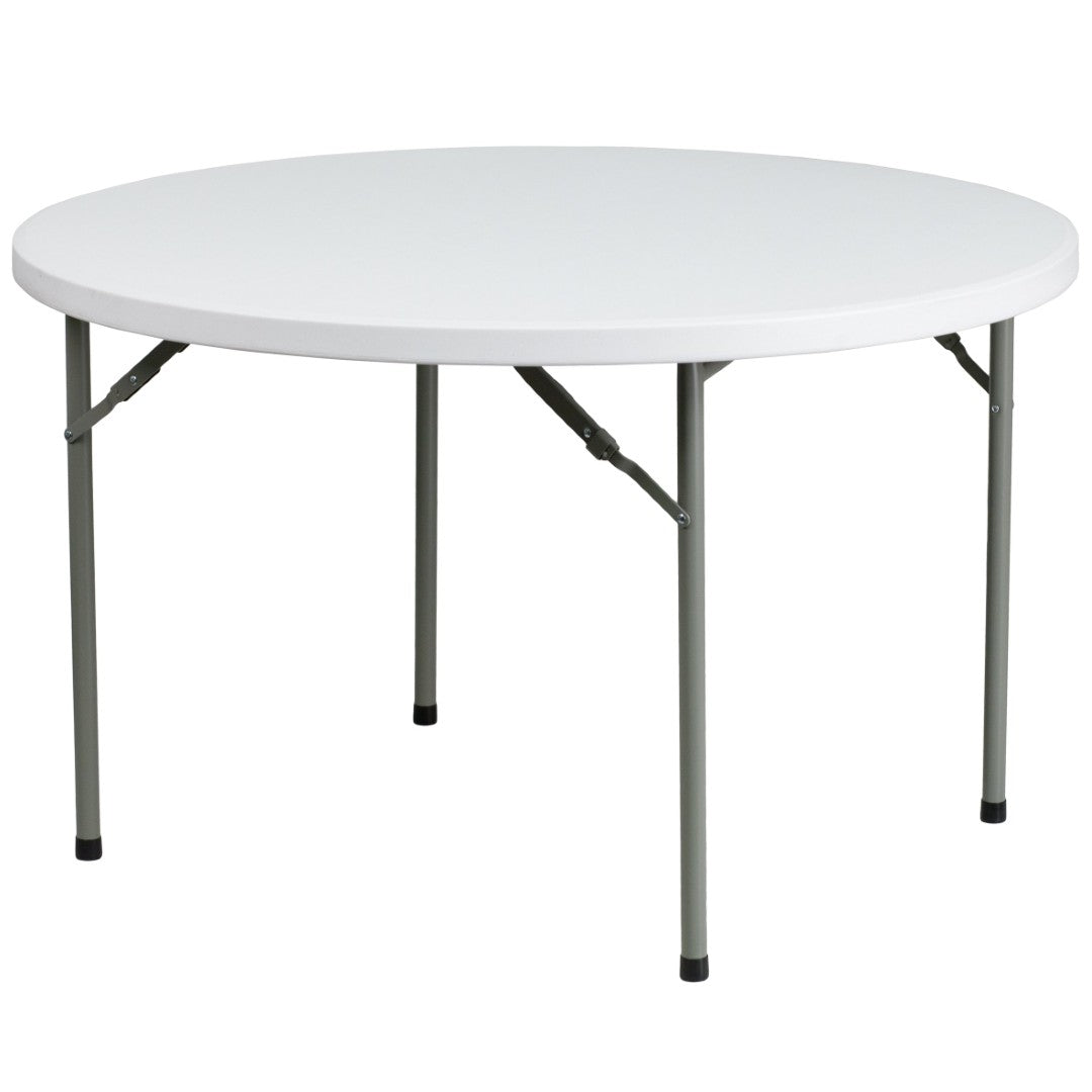 Make hosting effortless with this durable, commercial-grade 4-foot round folding table — ideal for banquet halls, trade shows, catering events, or backyard gatherings. The thick granite-white tabletop offers a clean, professional look and rugged performance: it's waterproof, impact- and stain-resistant, supports heavy loads, and folds flat for compact storage and transport. Whether you're setting up for a party, a craft night, or a conference, this table combines strength, convenience, and easy maintenance.