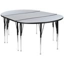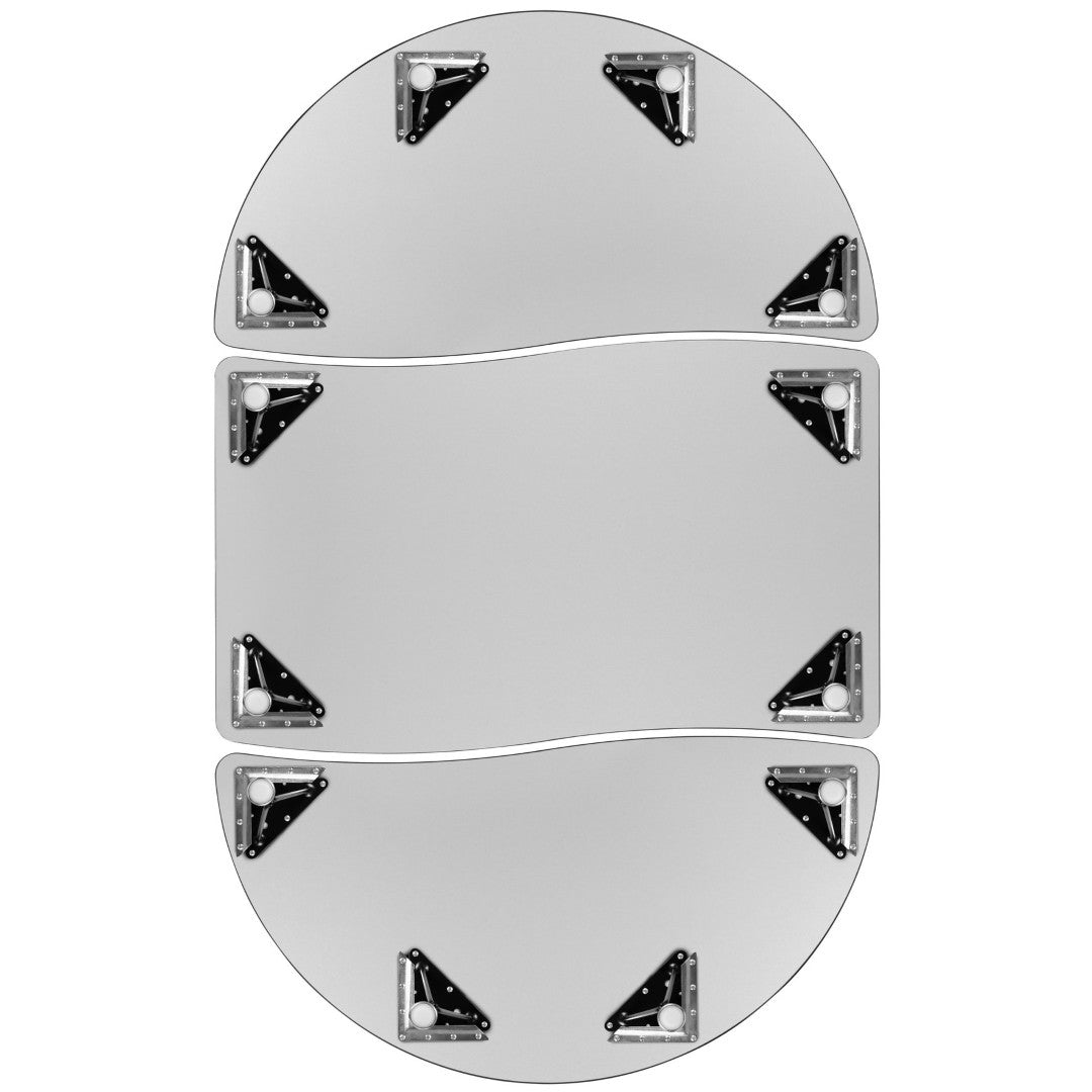 Bring collaboration and versatility to your learning or meeting space with this durable, modern 3-piece nesting wave activity table set. Designed for group work, stations, and flexible layouts, the set combines two half‑circle ends with a rectangular center to form a 76" oval workspace that resists scratches, stains, and warping while offering easy, tool-free height adjustment for growing classrooms or multi‑use environments.