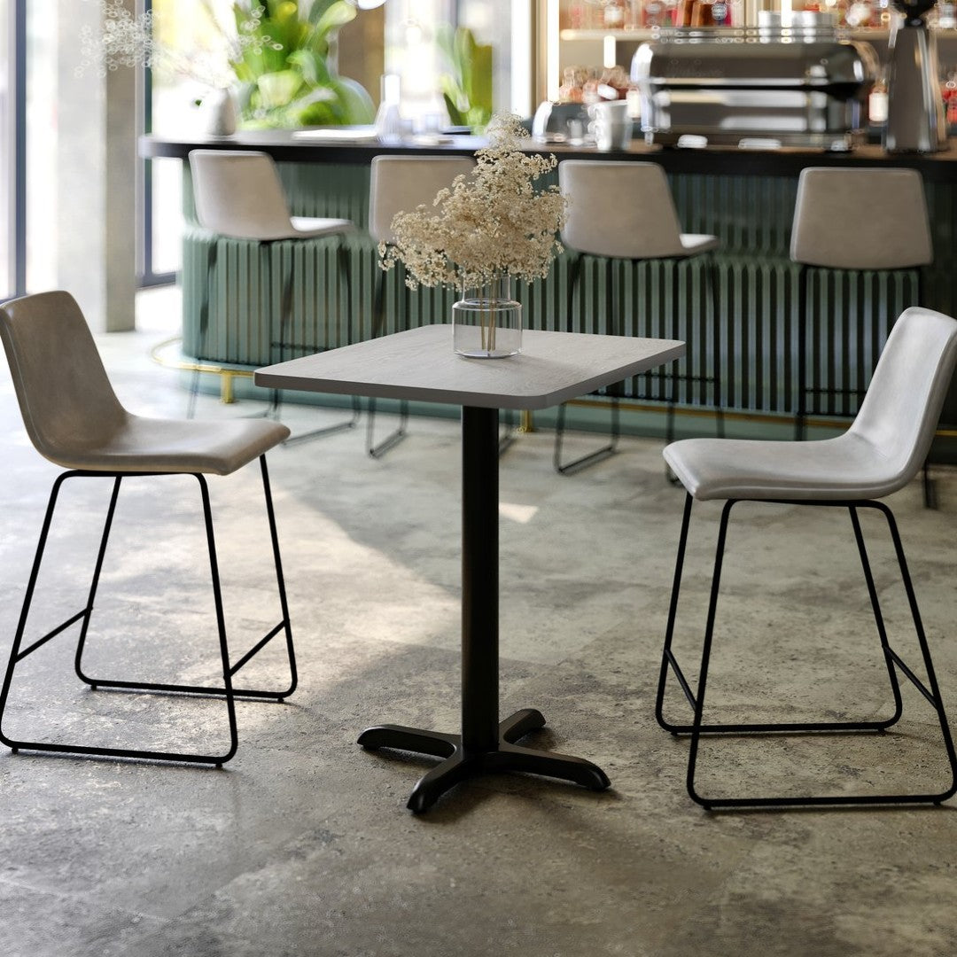 Upgrade your dining or hospitality space with a durable, commercial-grade table set that blends modern style with rugged performance. Ideal for restaurants, break rooms, cafeterias, or home use, this configuration includes a reversible laminate top and a sturdy "X" style cast iron base designed to withstand daily wear while delivering a clean, professional look.