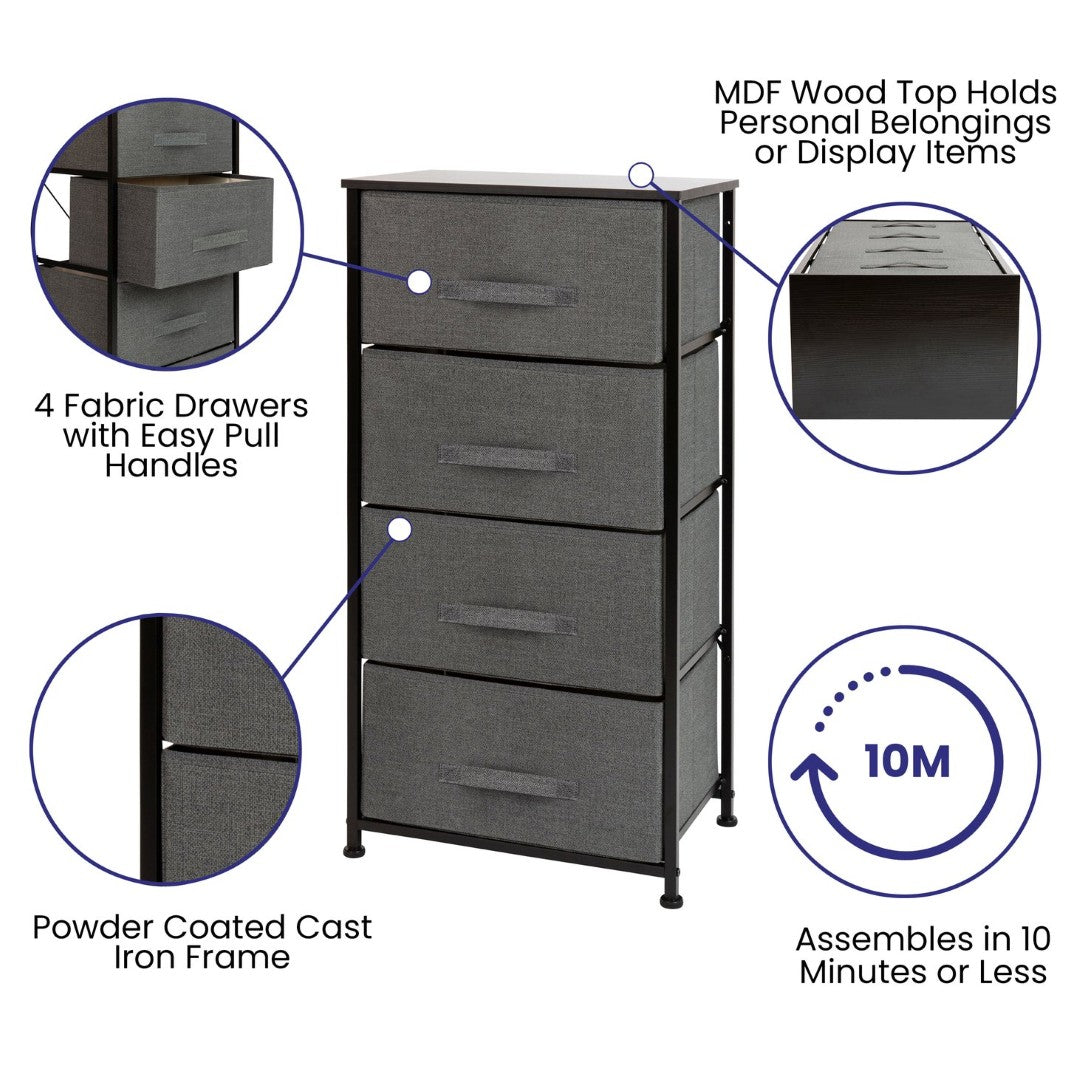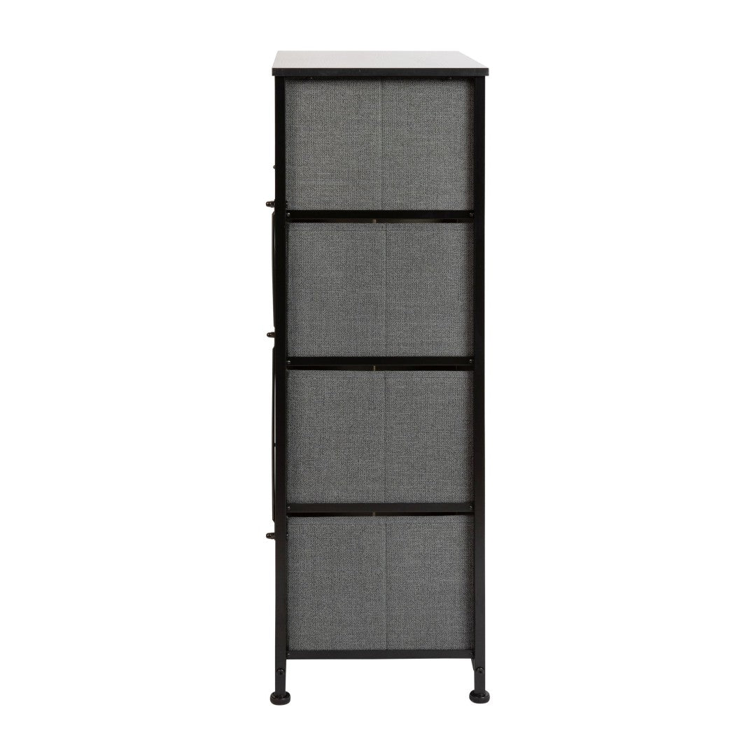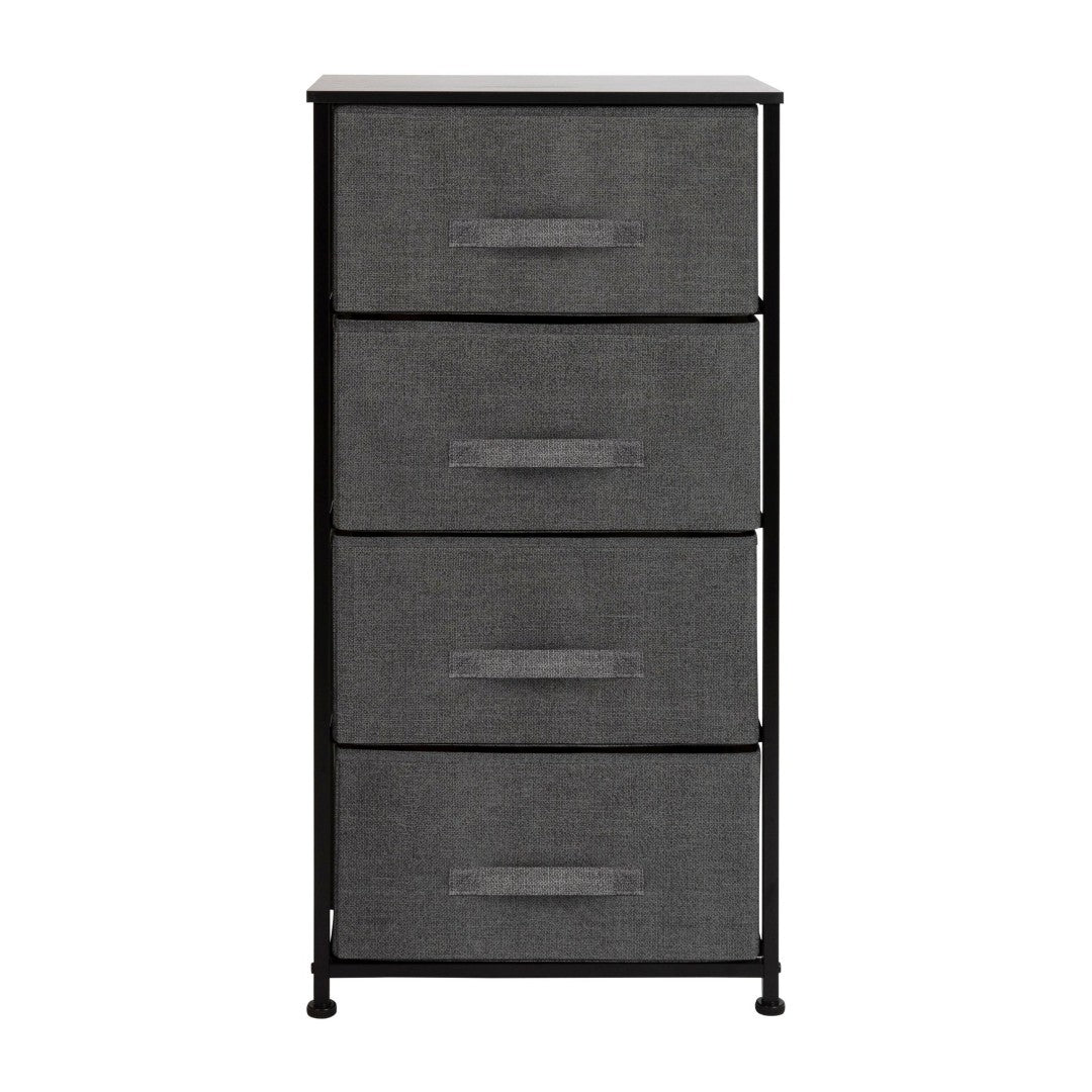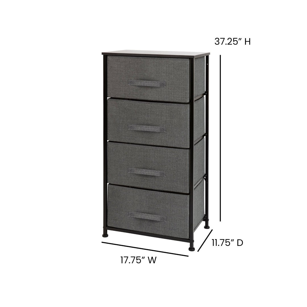 Add streamlined, durable storage to any room with this compact 4-drawer vertical dresser. Designed to blend industrial strength with everyday convenience, it pairs a powder-coated cast iron frame and engineered wood top with easy-pull, dark gray non-woven fabric drawers for a stylish, practical solution that fits beside beds, inside closets, or in tight living spaces.