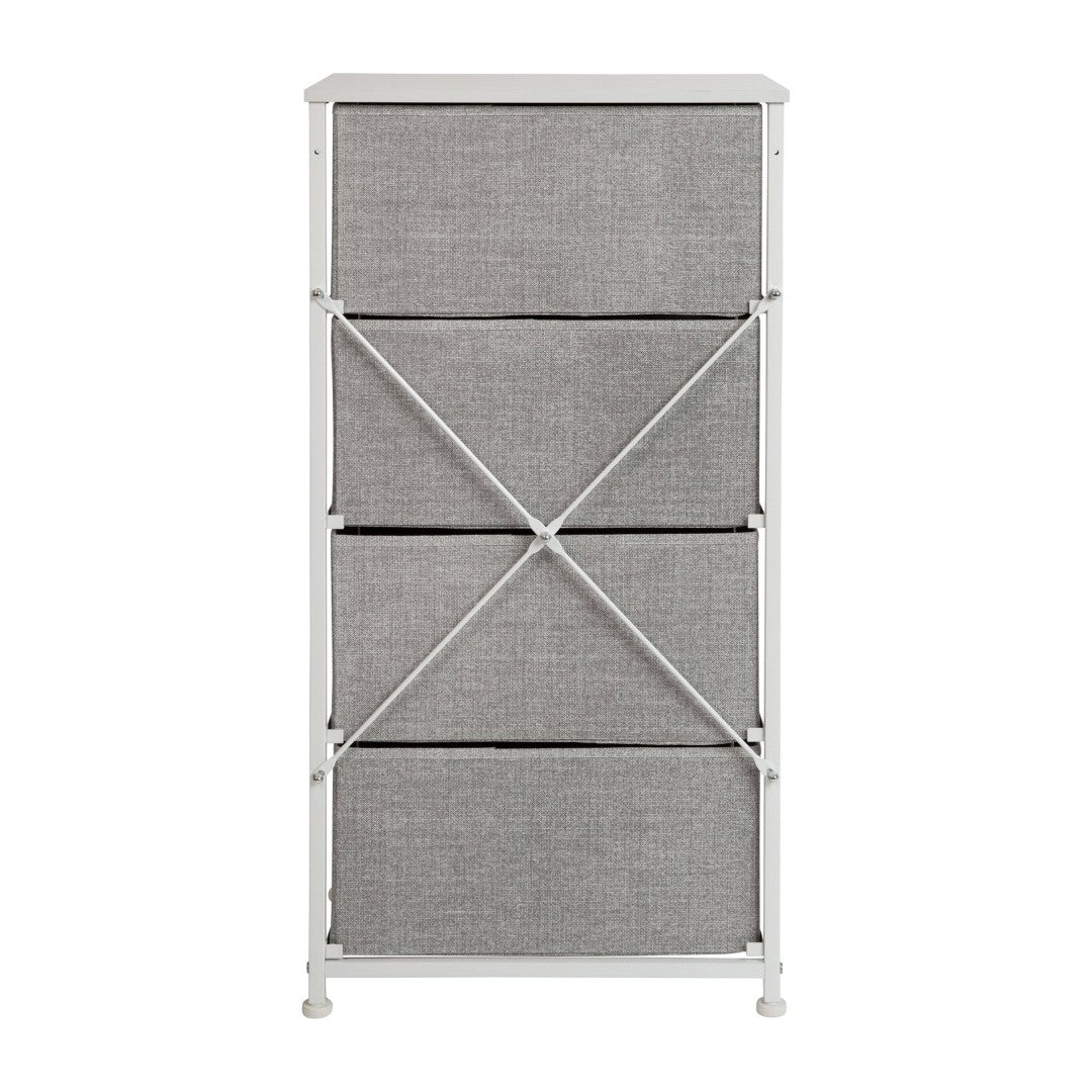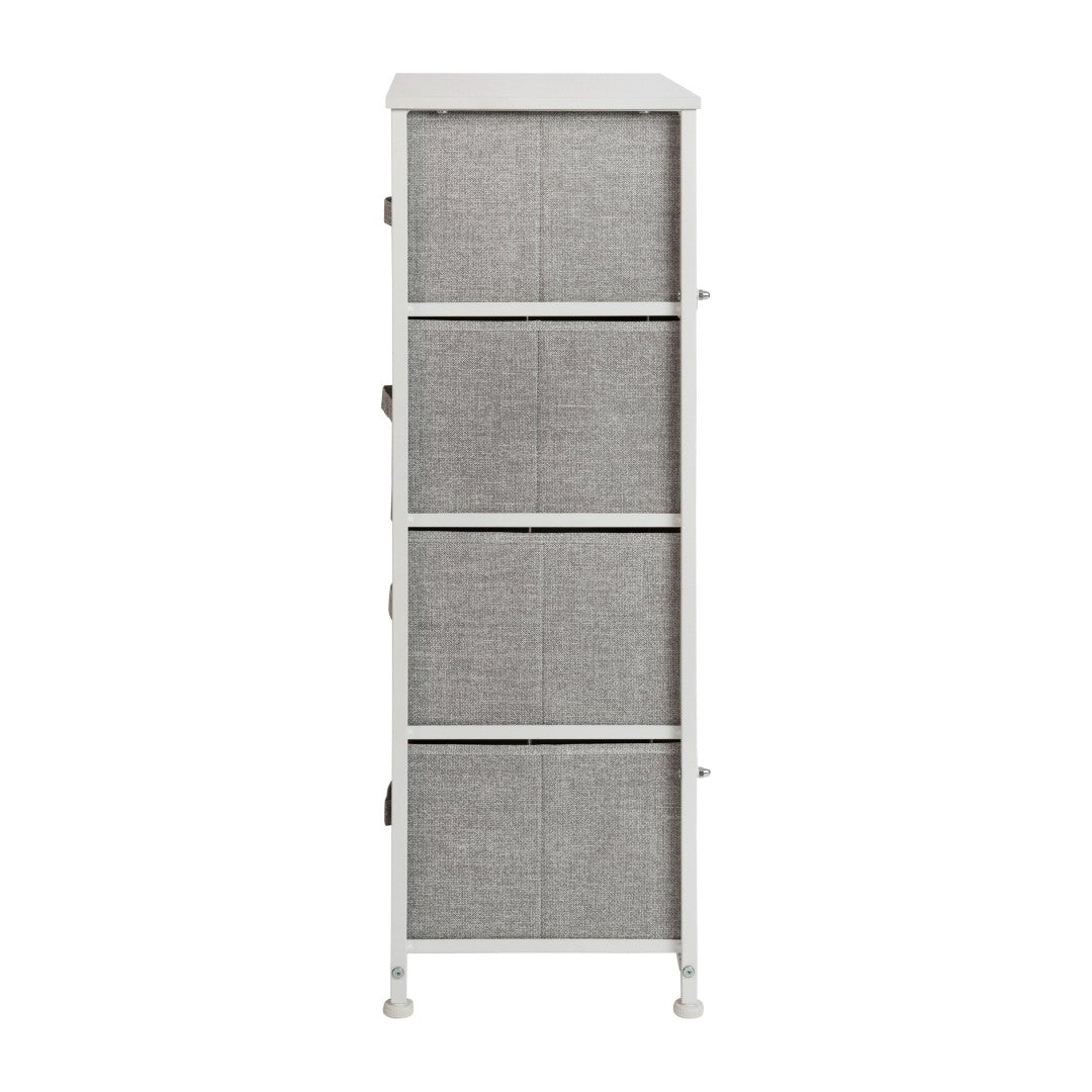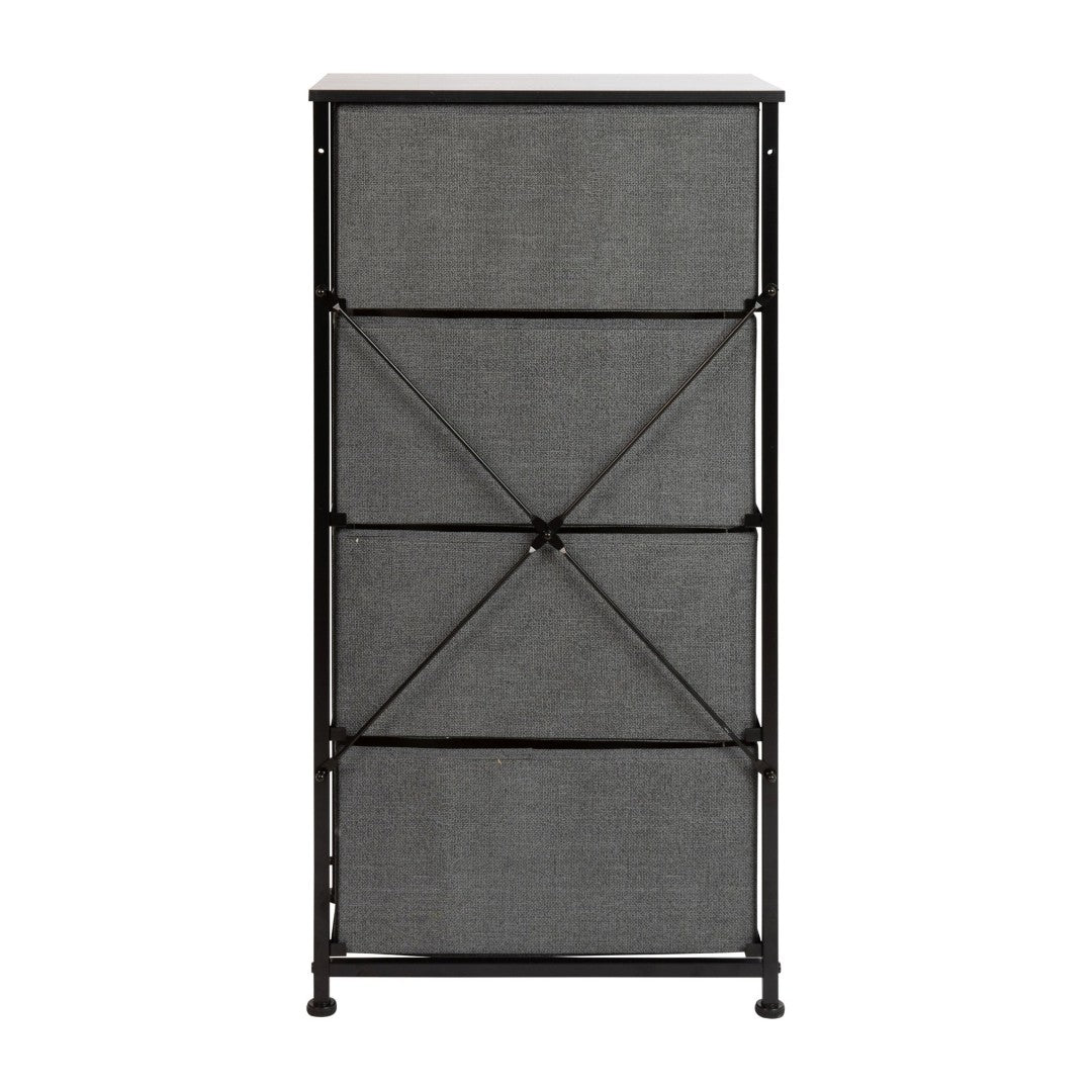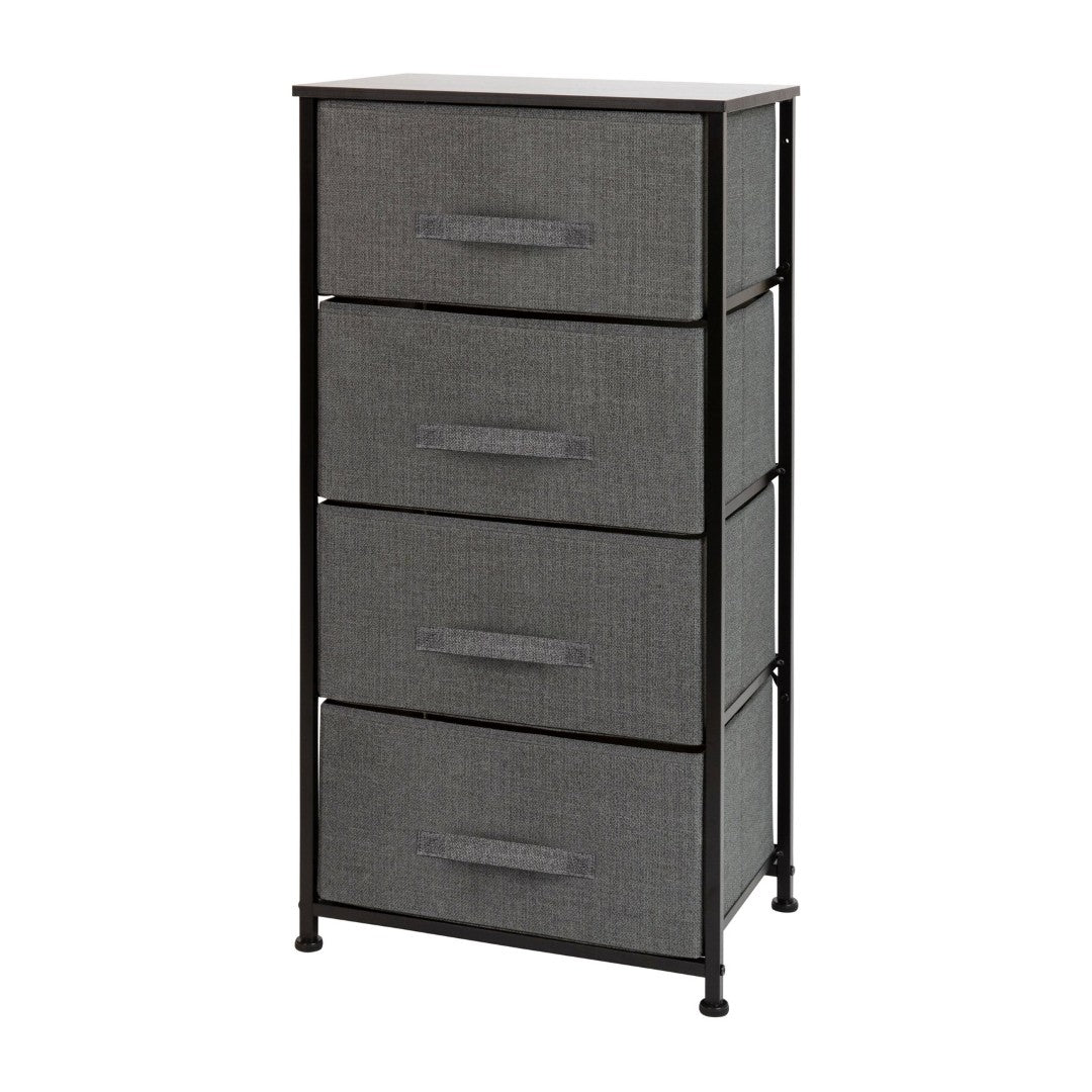 Add streamlined, durable storage to any room with this compact 4-drawer vertical dresser. Designed to blend industrial strength with everyday convenience, it pairs a powder-coated cast iron frame and engineered wood top with easy-pull, dark gray non-woven fabric drawers for a stylish, practical solution that fits beside beds, inside closets, or in tight living spaces.