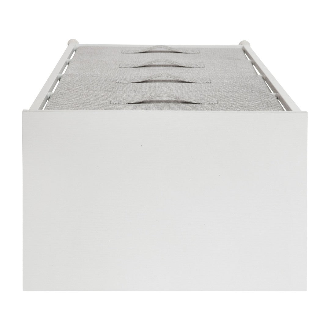 - Four easy-pull dark gray non-woven fabric drawers — fade- and stain-resistant for long-lasting appearance
