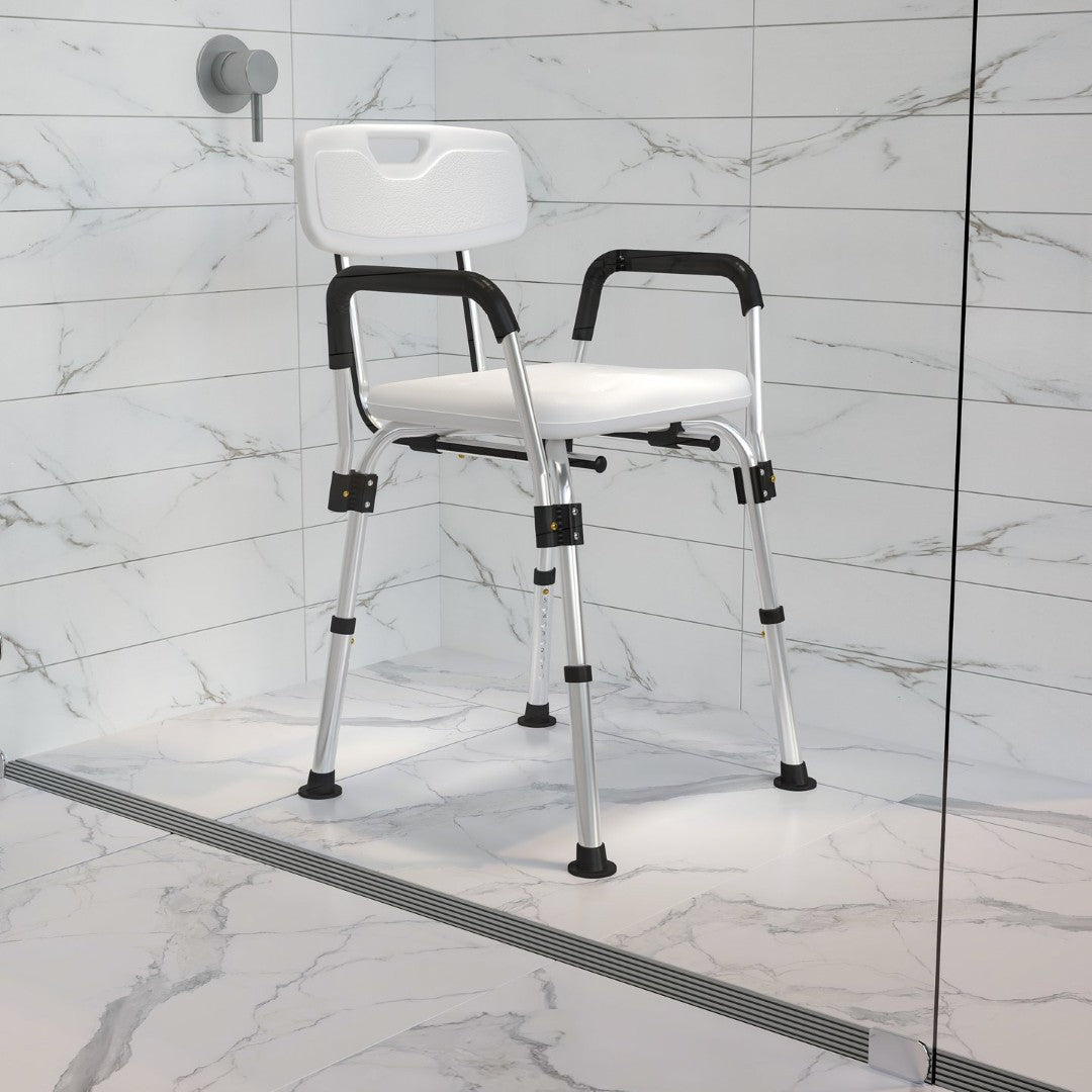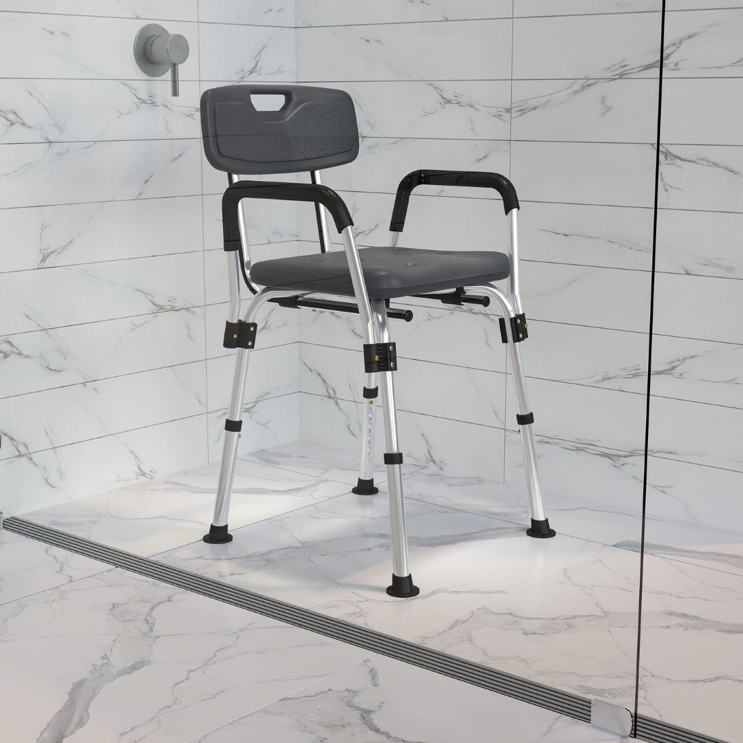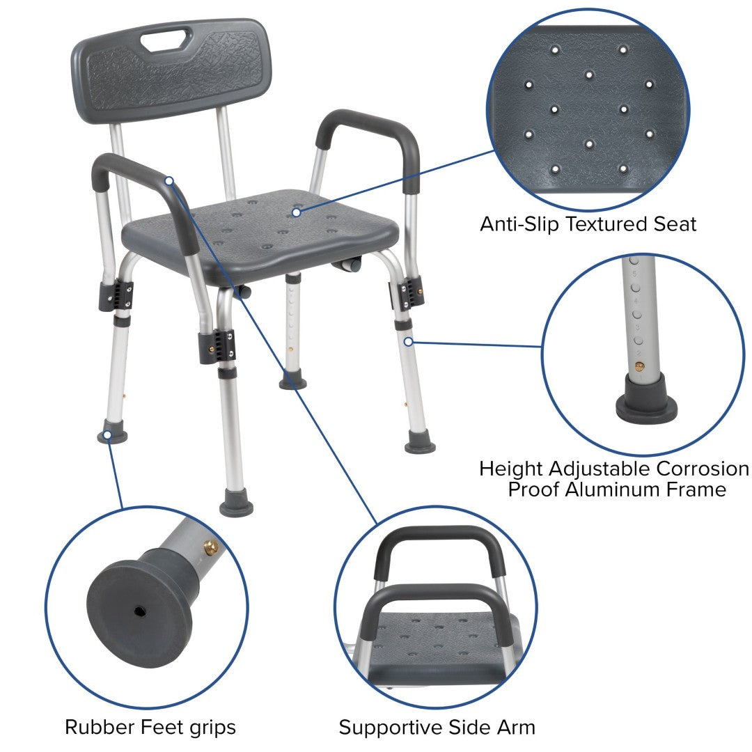 - Medical Grade Shower Chair with Height Adjustable Corrosion-Resistant Aluminum Frame