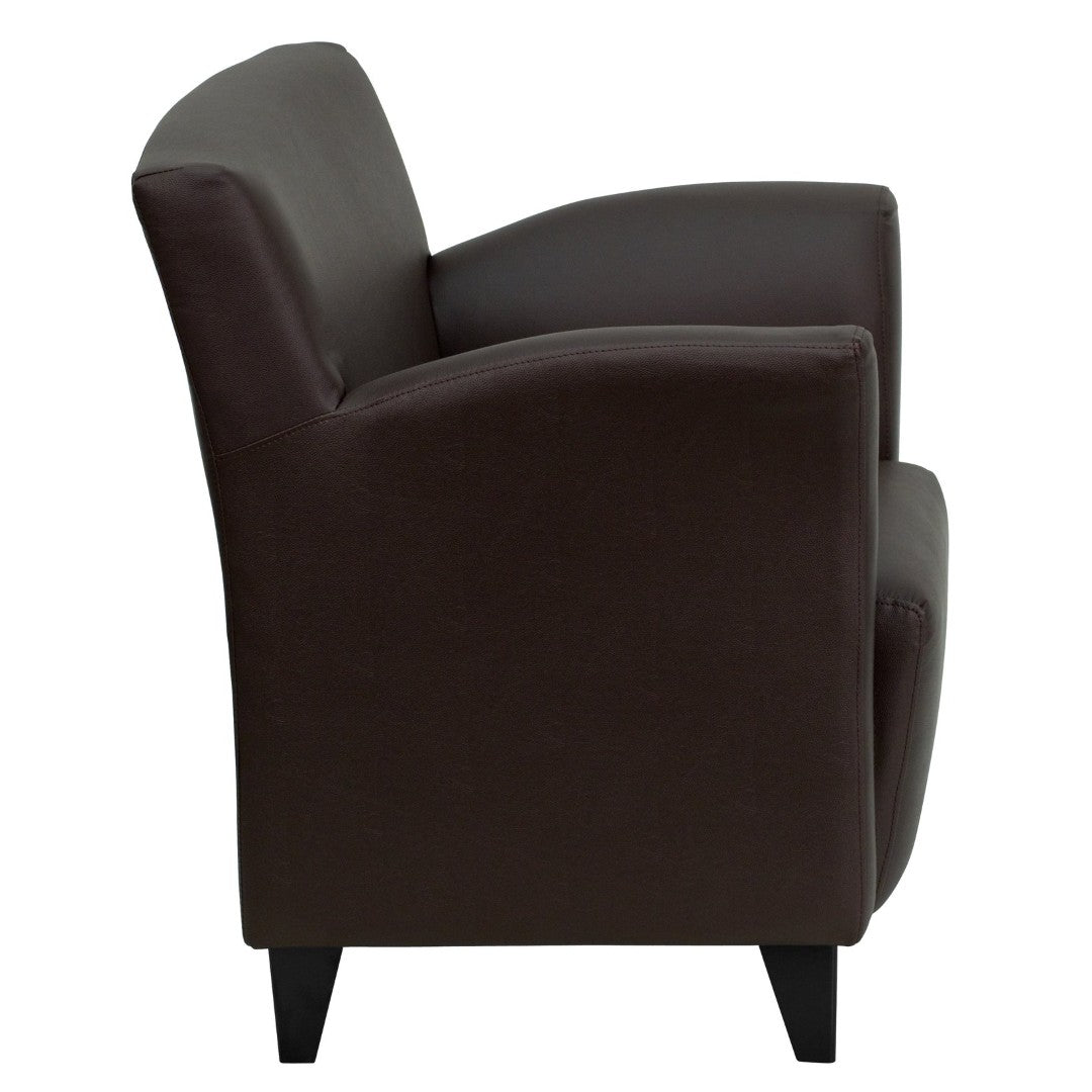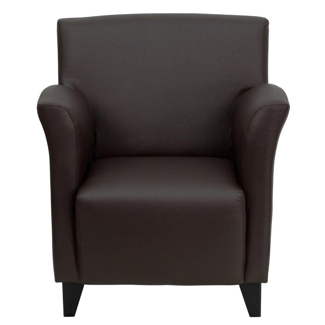 Bring a contemporary, durable seating solution to your lobby, waiting room, or guest area with this stylish lounge chair. Designed to blend modern lines with long-lasting comfort, it pairs soft LeatherSoft upholstery with a supportive foam core and sturdy metal feet — ideal for high-traffic hospitality and office environments.