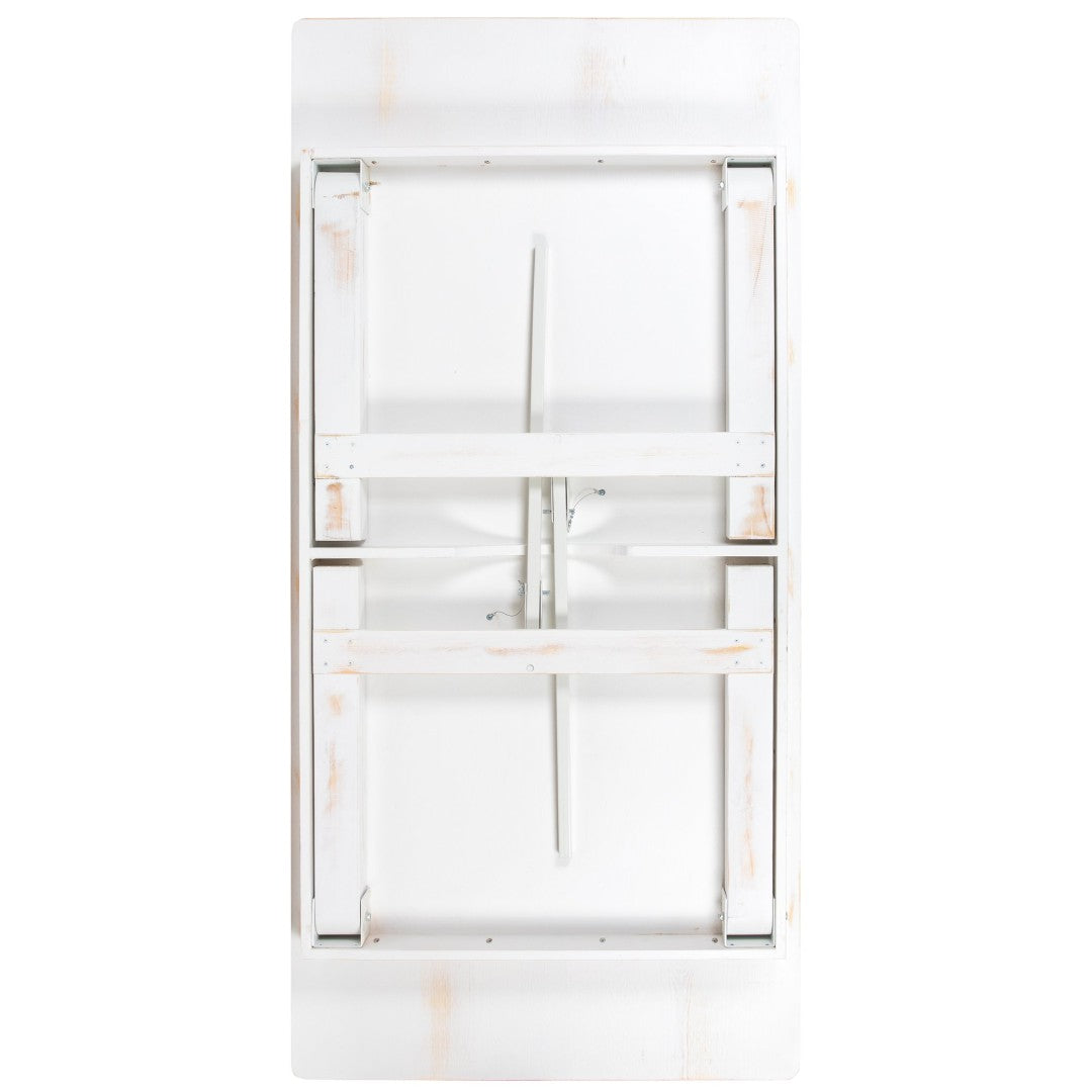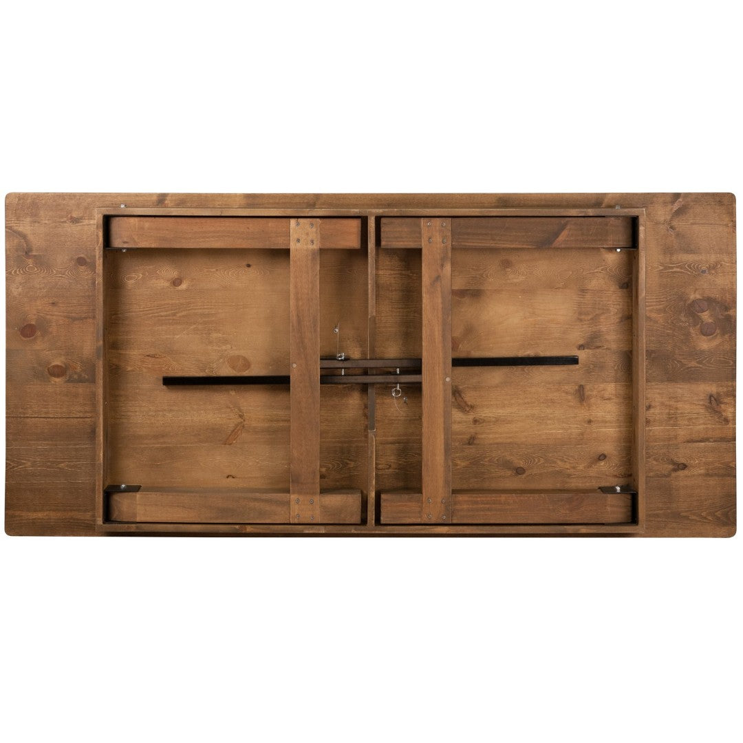 Bring rustic charm and durable function to your dining space with this Antique Rustic Folding Farm Table and Four Bench Set. Crafted for both home and commercial use, the solid pine construction and smart folding design make it ideal for everyday family meals, events, or restaurant settings where easy setup, transport, and storage are essential. The clean farmhouse lines and distressed finish create a warm, country-modern look while the sturdy apron, thick plank top, and secure locking pins ensure stability and long-lasting performance.