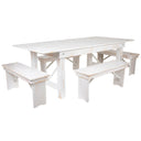 - Farmhouse Dining Table Set in Antique Rustic White Stain Finish