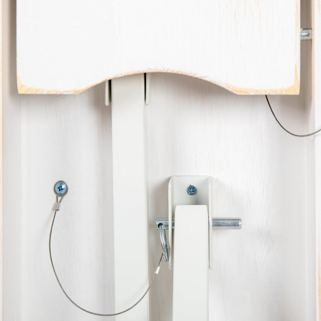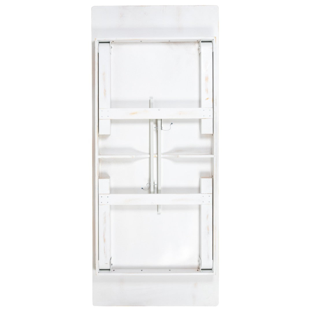 - Finish: Antique rustic white stain that highlights natural wood grain and complements modern farmhouse décor.