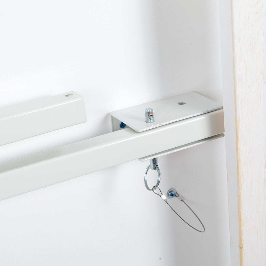 - Key materials: Solid pinewood plank top, steel hardware (pins and hinges) for secure folding and locking.