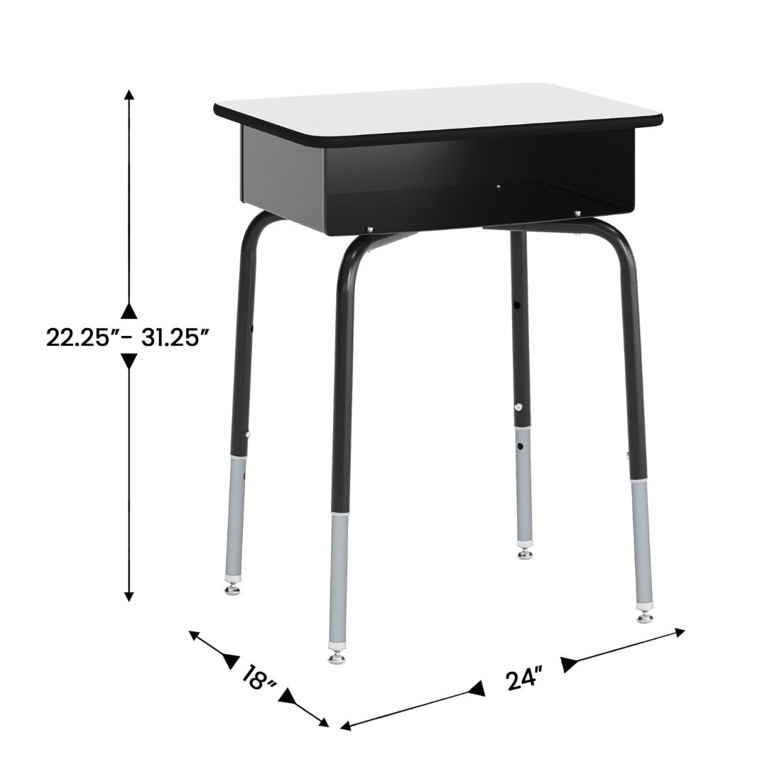 - Dimensions: Desk: 24"W x 18"D x 22.25"–31.25"H (height adjustable)