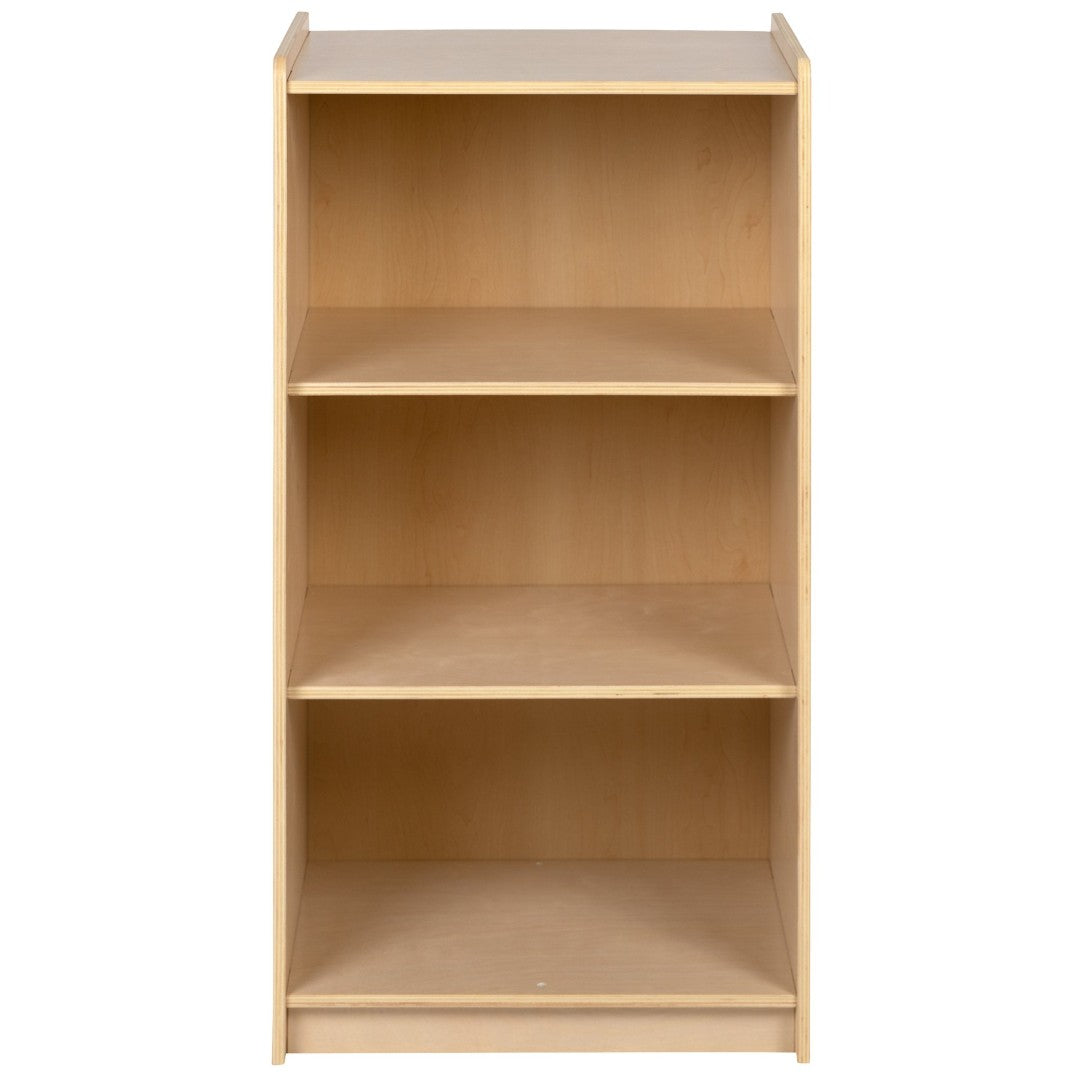 Keep playrooms, classrooms, waiting areas, and home spaces tidy with a sturdy, kid-friendly wooden storage cabinet that combines durability, safety and simple style. Designed for everyday use where children gather, this three-shelf unit offers easy organization for books, toys, blocks and classroom supplies while blending into any décor with a natural birch finish.