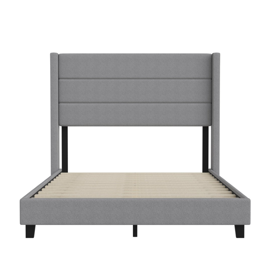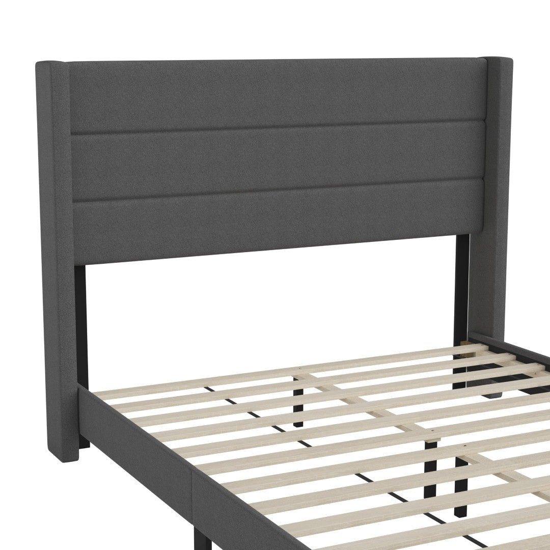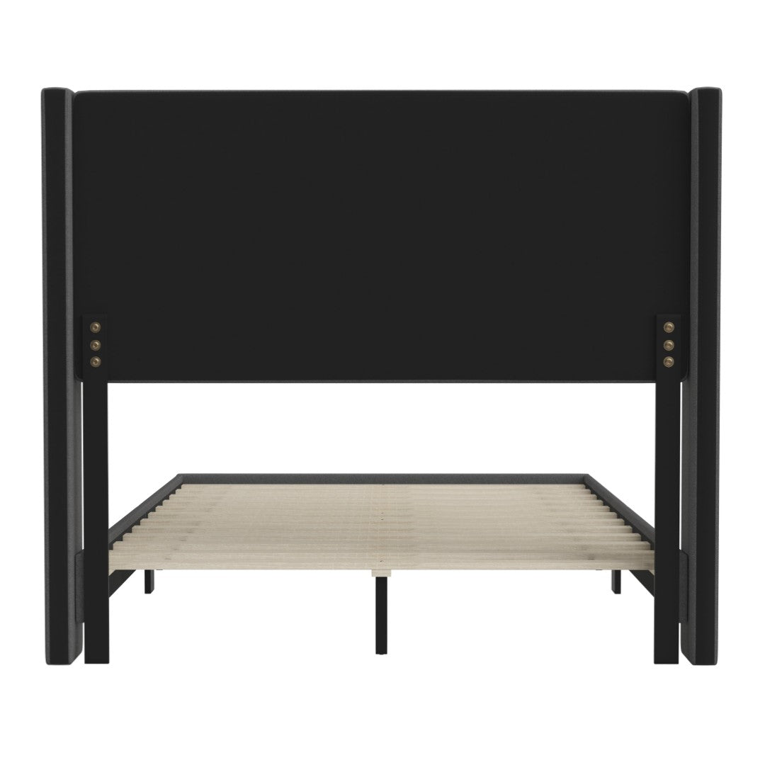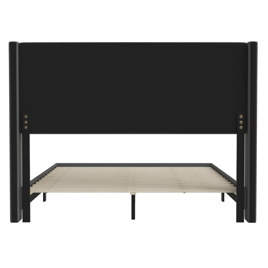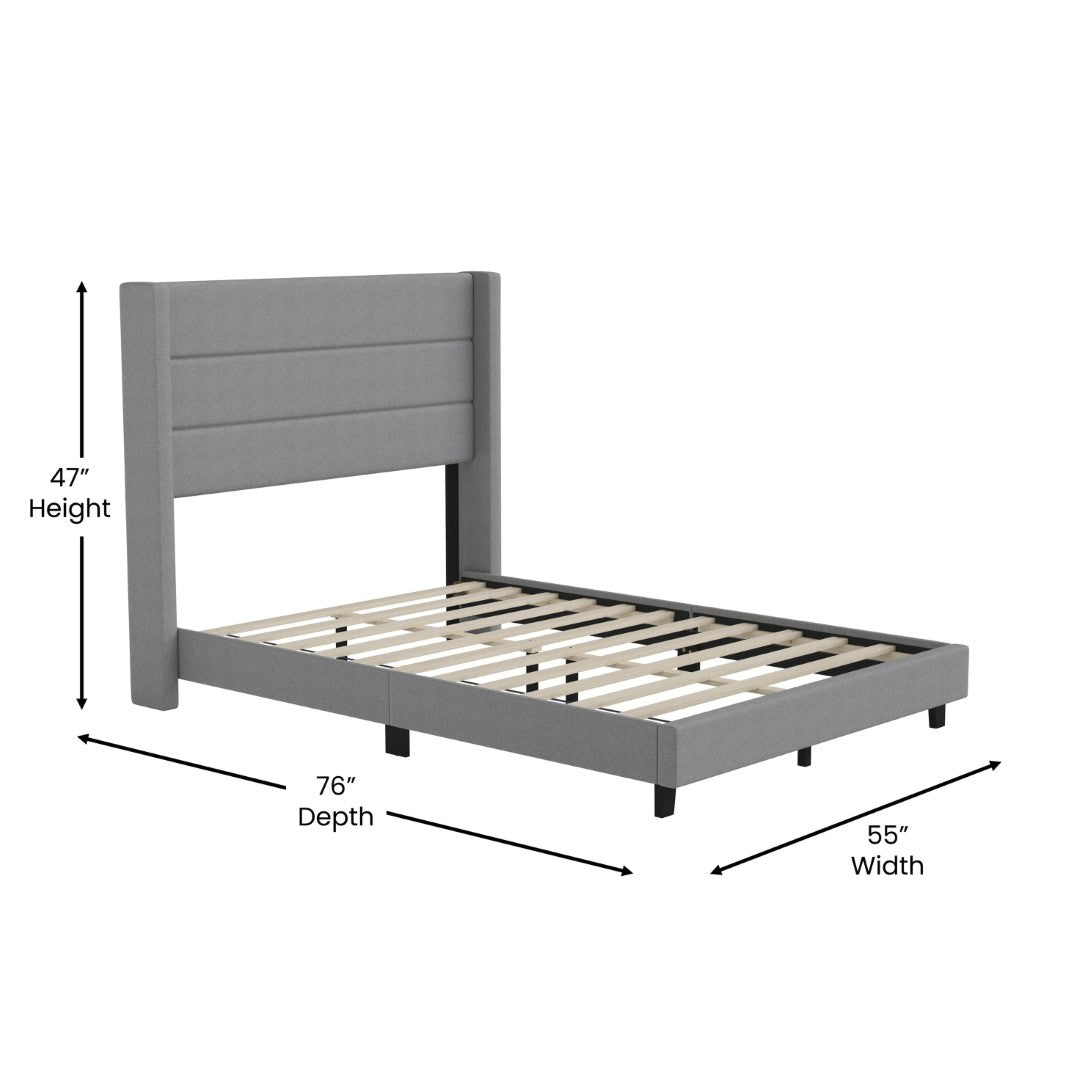 - Modern Upholstered Full Wood Slat Platform Bed with Wingback Headboard