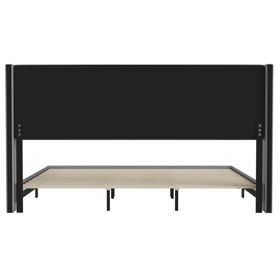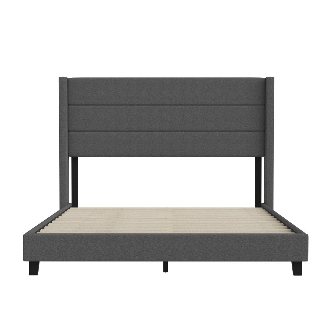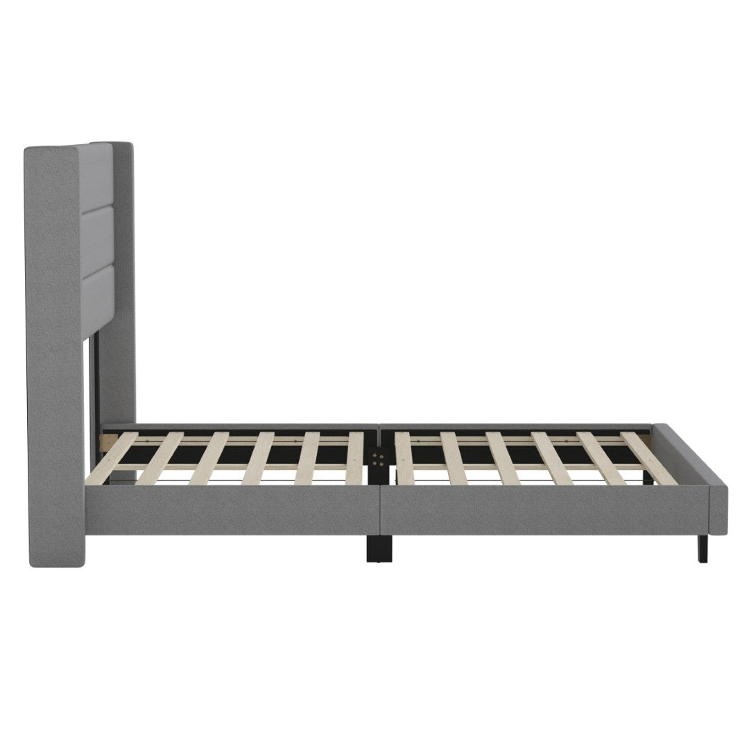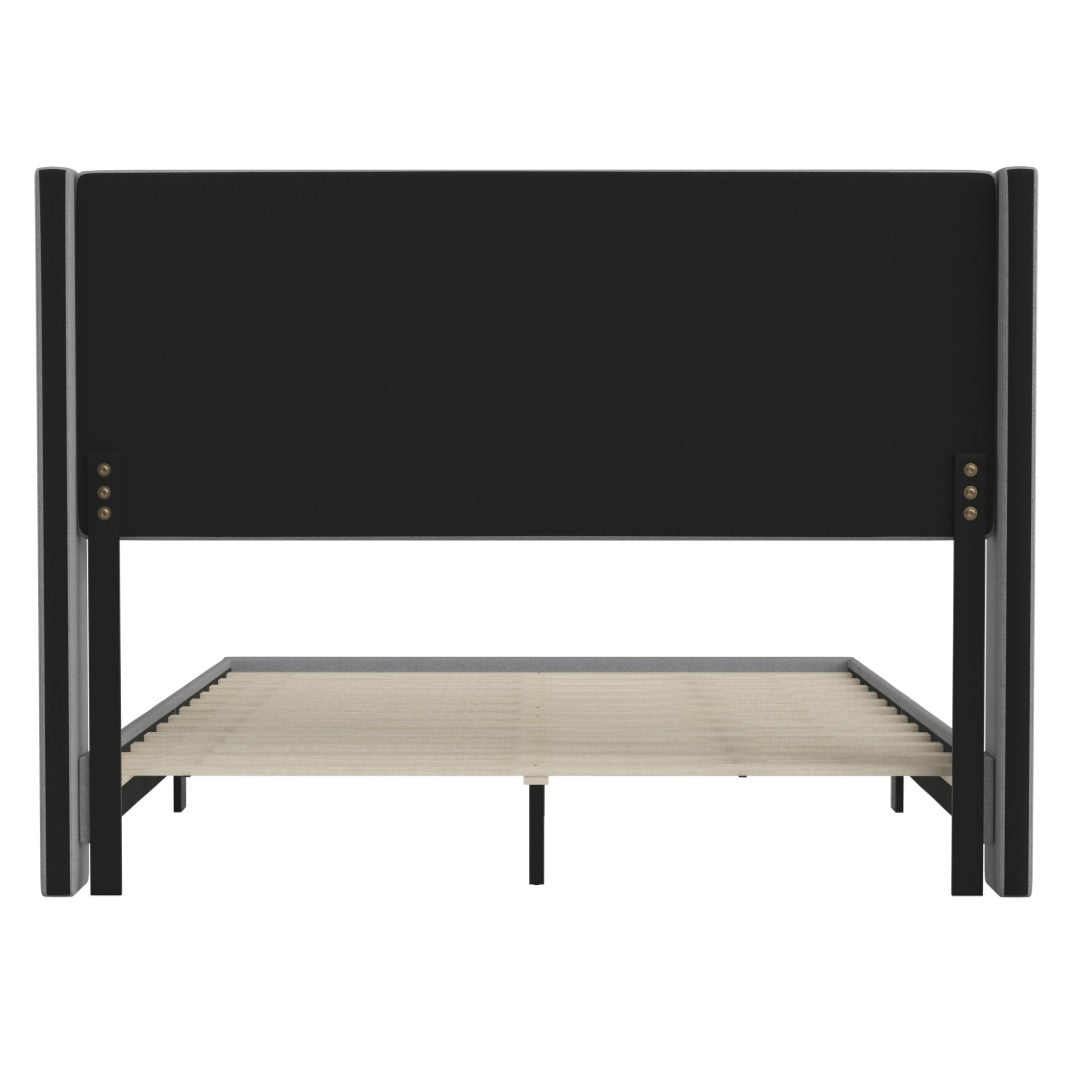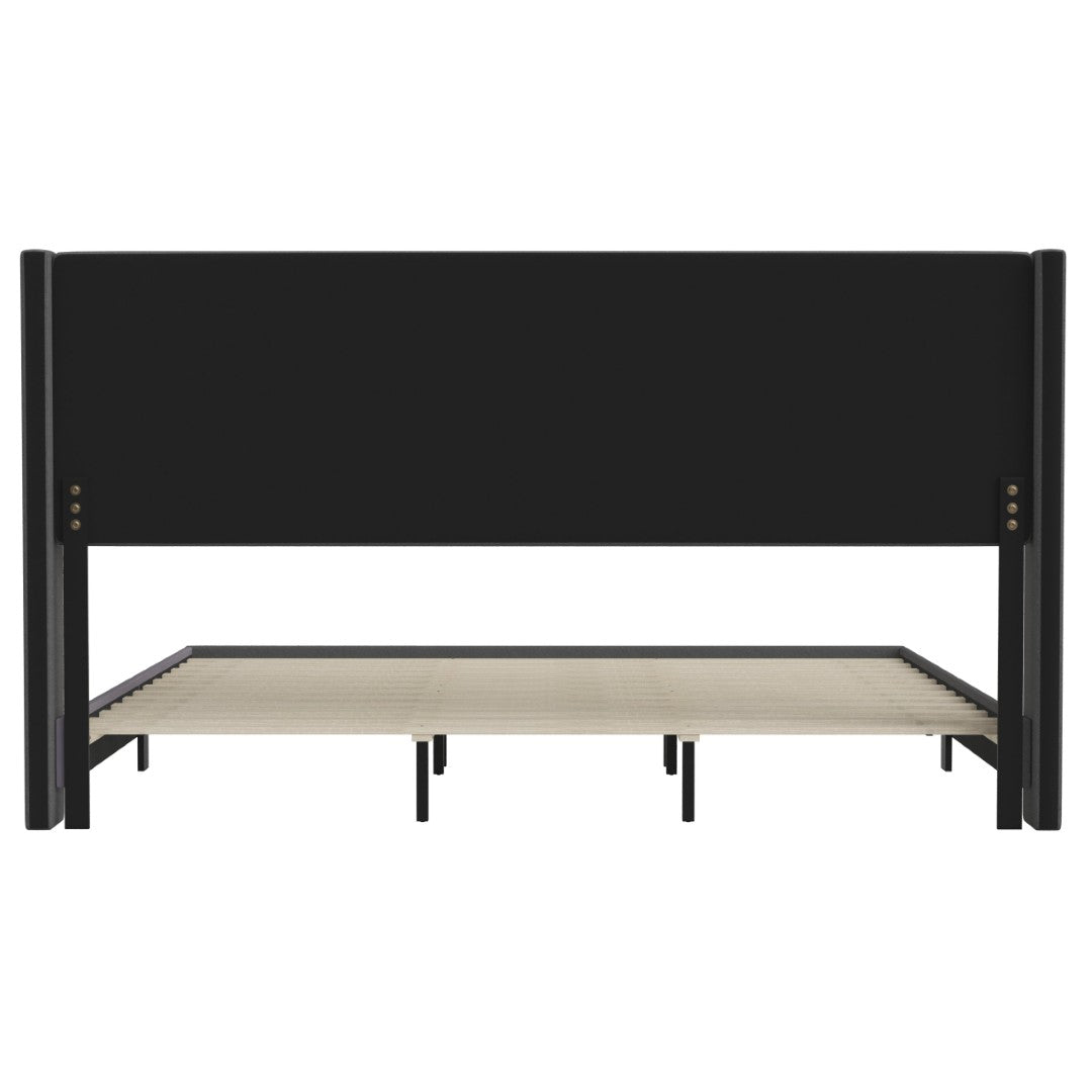 - Modern Upholstered Full Wood Slat Platform Bed with Wingback Headboard