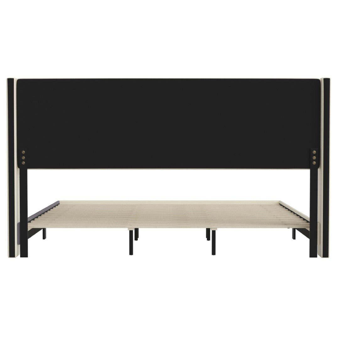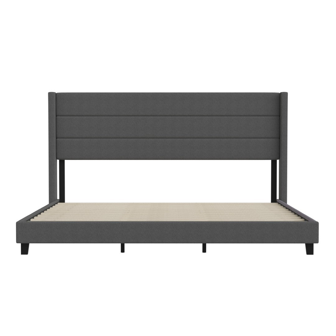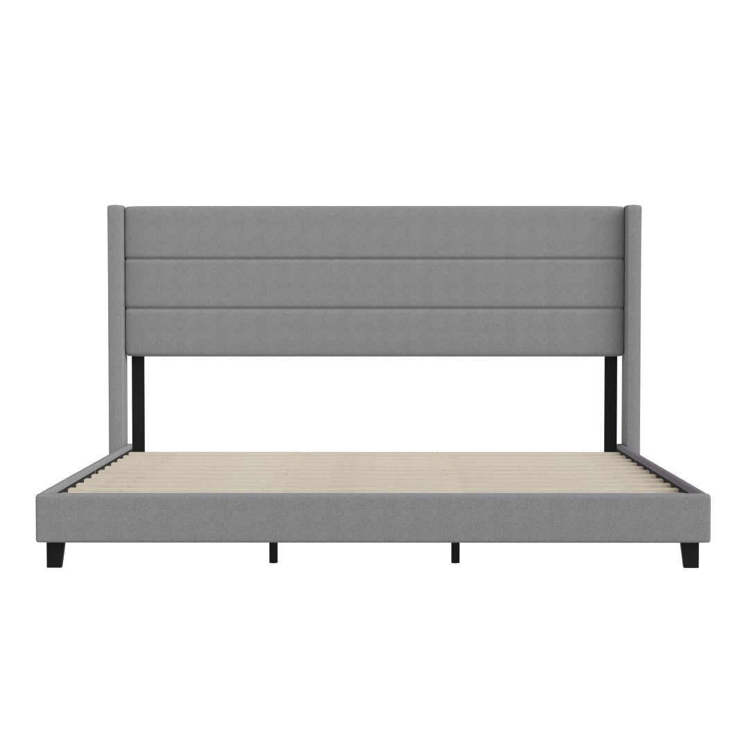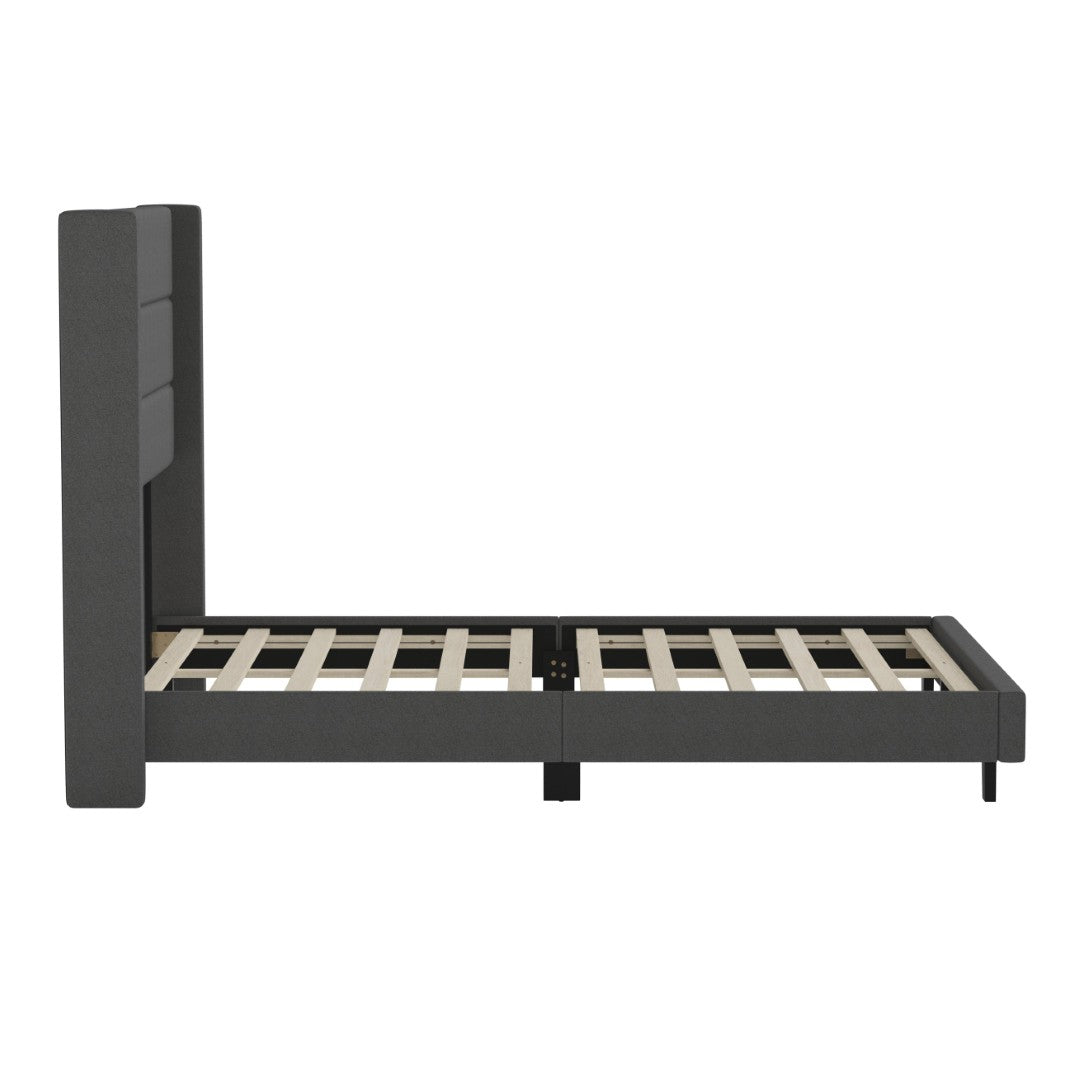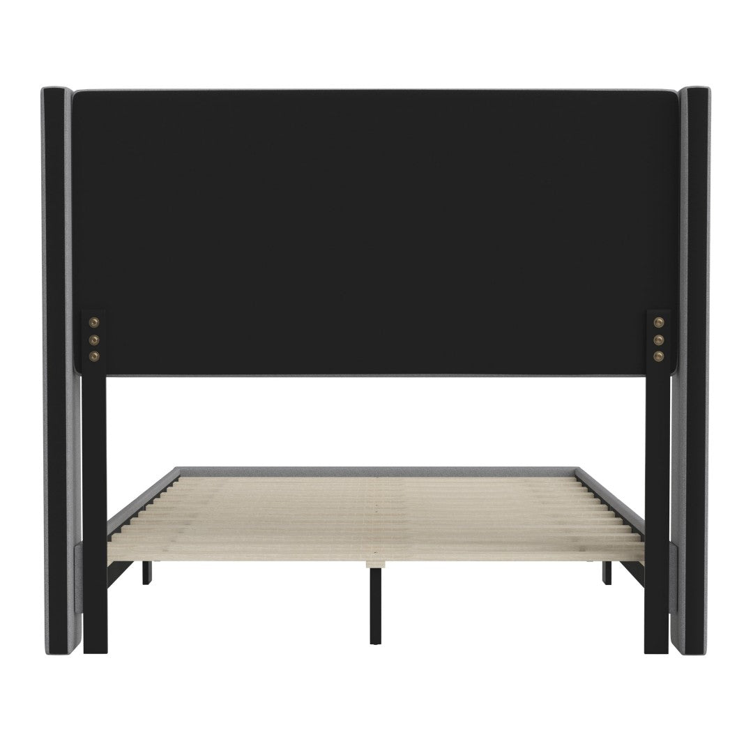 - Modern Upholstered Full Wood Slat Platform Bed with Wingback Headboard