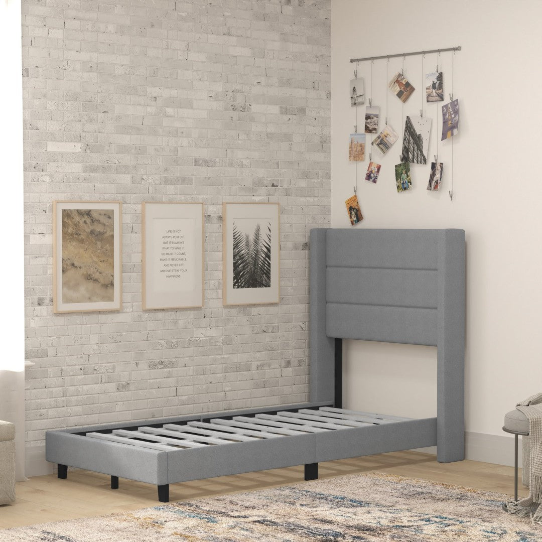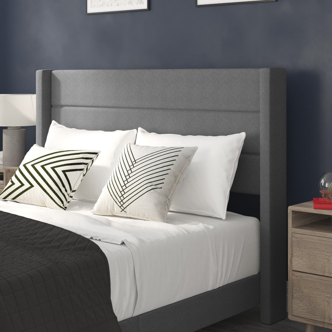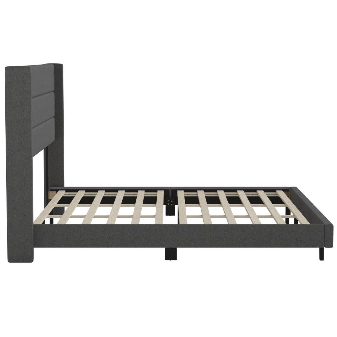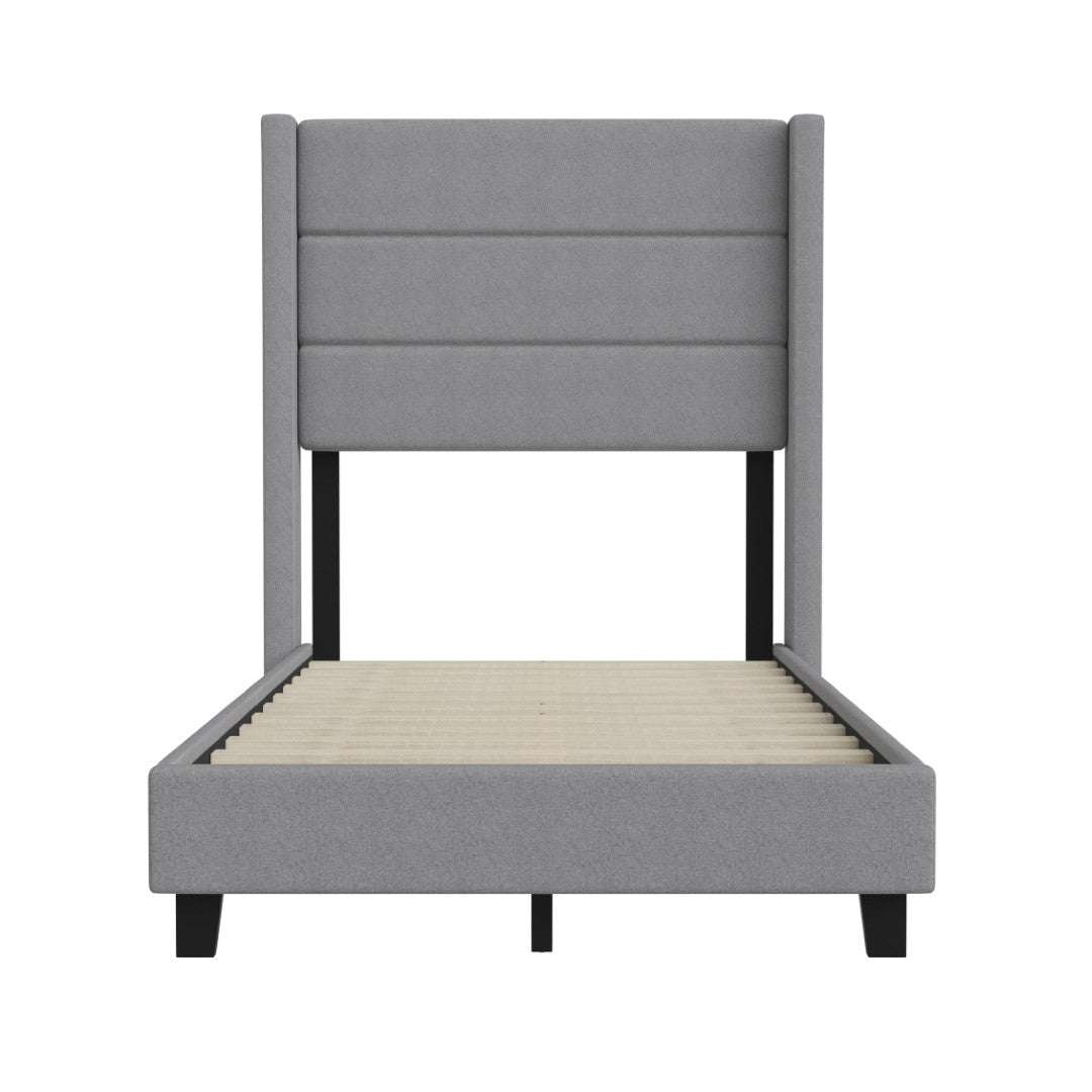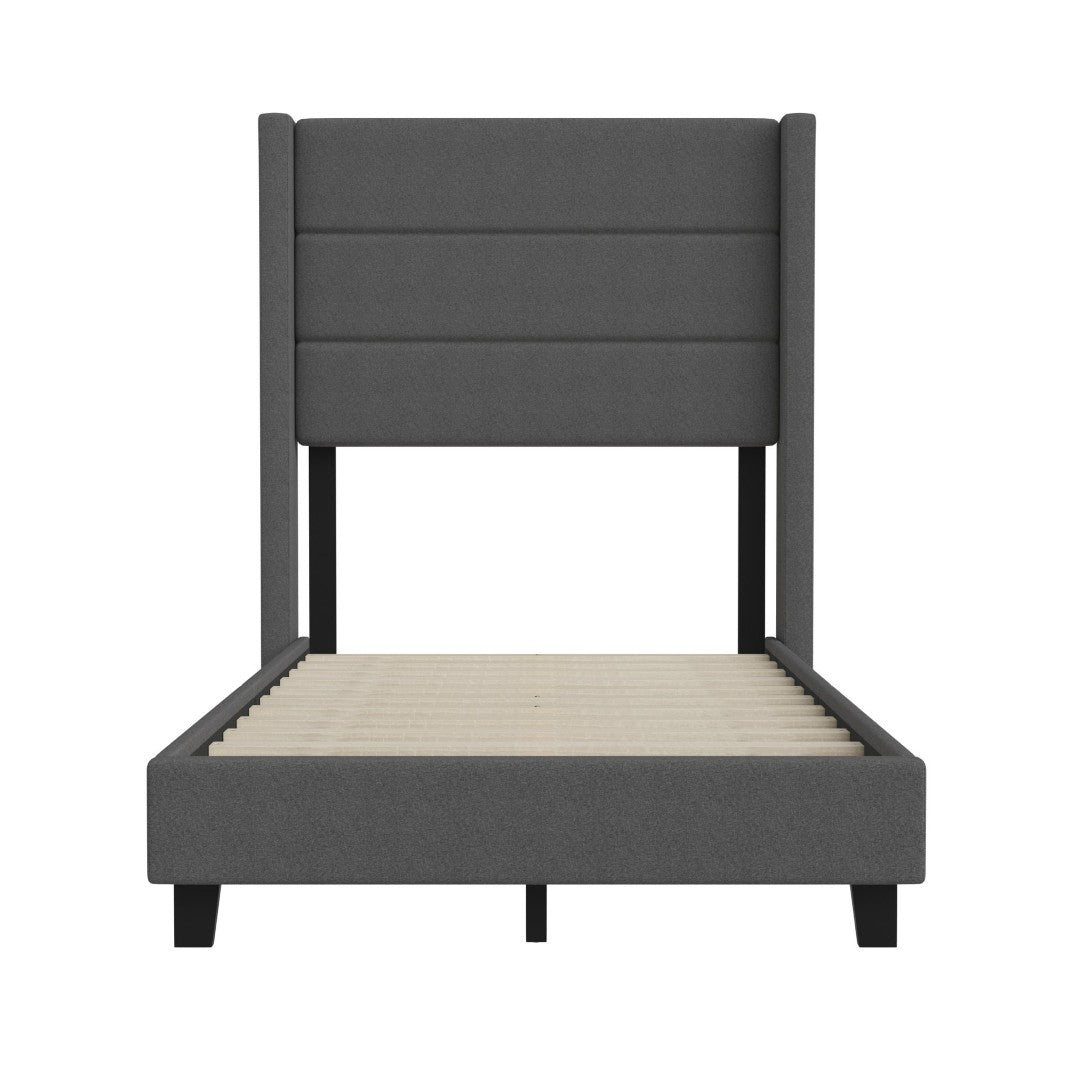 - Modern Upholstered Full Wood Slat Platform Bed with Wingback Headboard