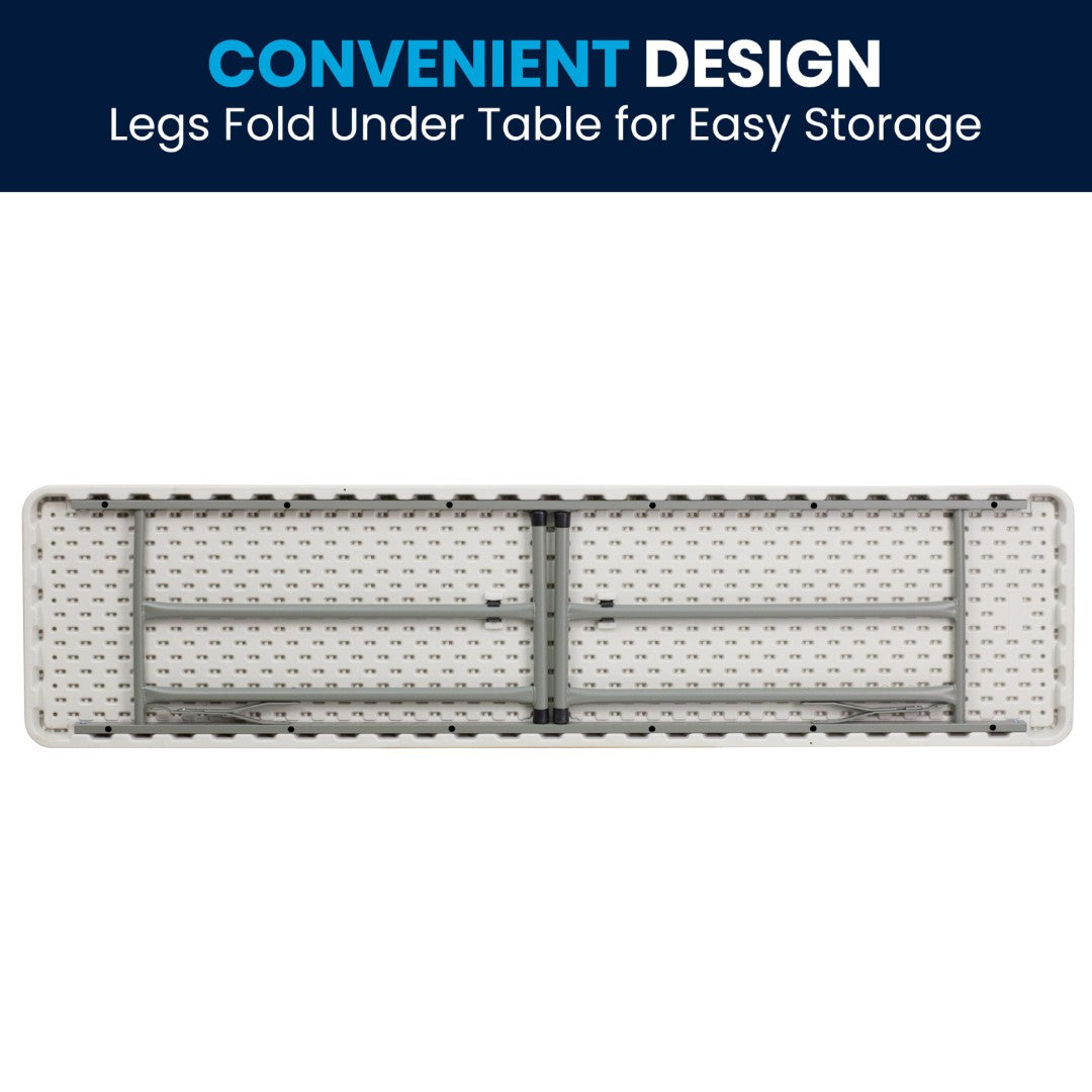 - Portable and easy to store: Folding legs lock beneath the tabletop for secure transport and compact storage.