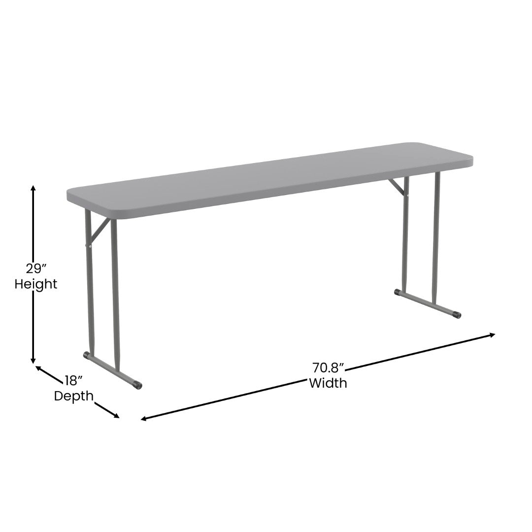 - Dimensions: 18"W x 70.8"D x 29"H — narrow profile optimizes aisle space while providing a full 6‑ft work surface.