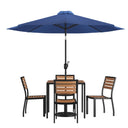 - All-Weather Faux Teak Patio Table & 4 Chair Set with Umbrella and Base