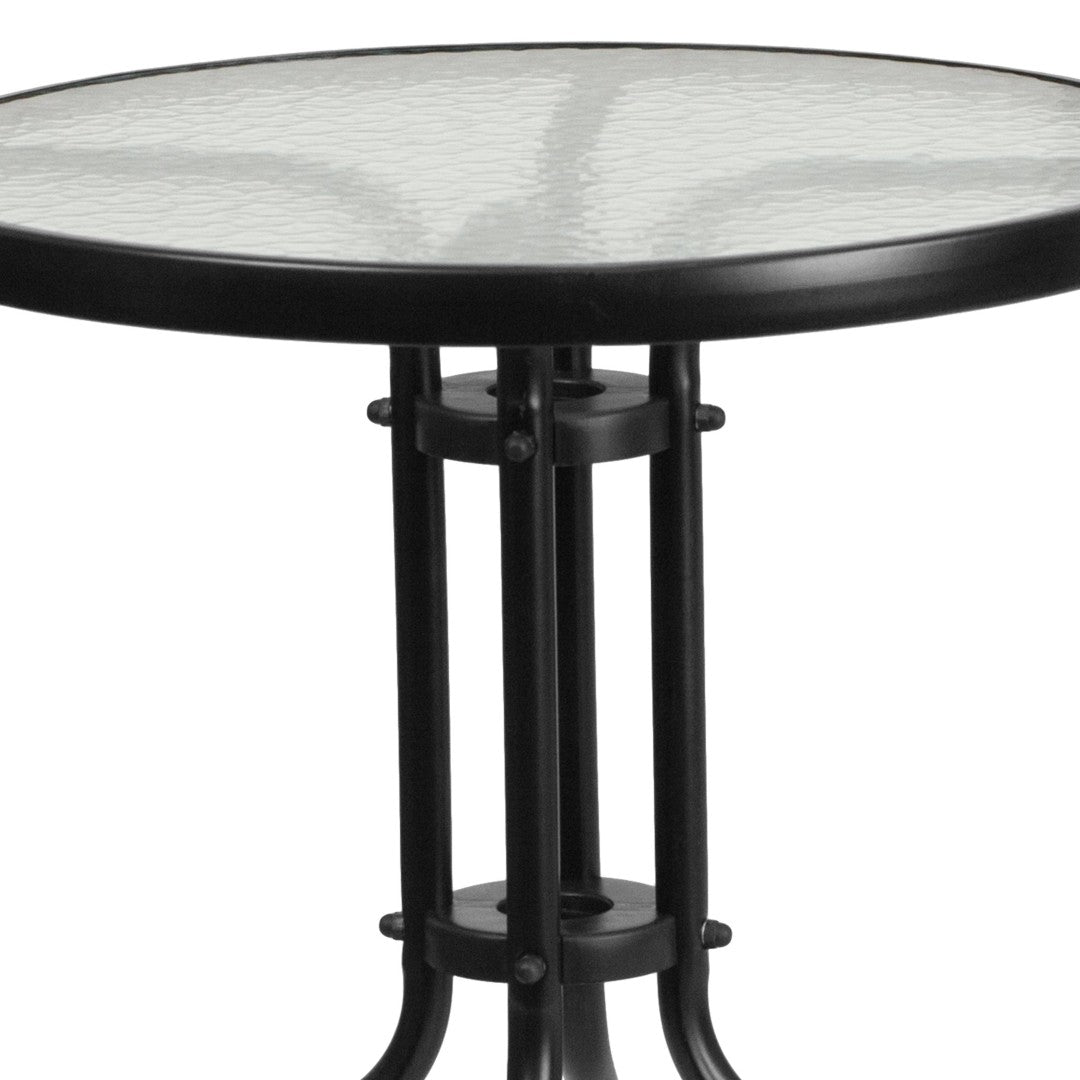 Create a welcoming bistro or patio nook with this compact, durable 3-piece set — a 23.75" round tempered glass table and two lightweight black rattan stack chairs. Thoughtfully engineered for both commercial and residential spaces, the set combines clean modern lines, weather-ready materials, and comfortable seating to maximize style and function in small footprints like cafes, hotel terraces, or home patios.