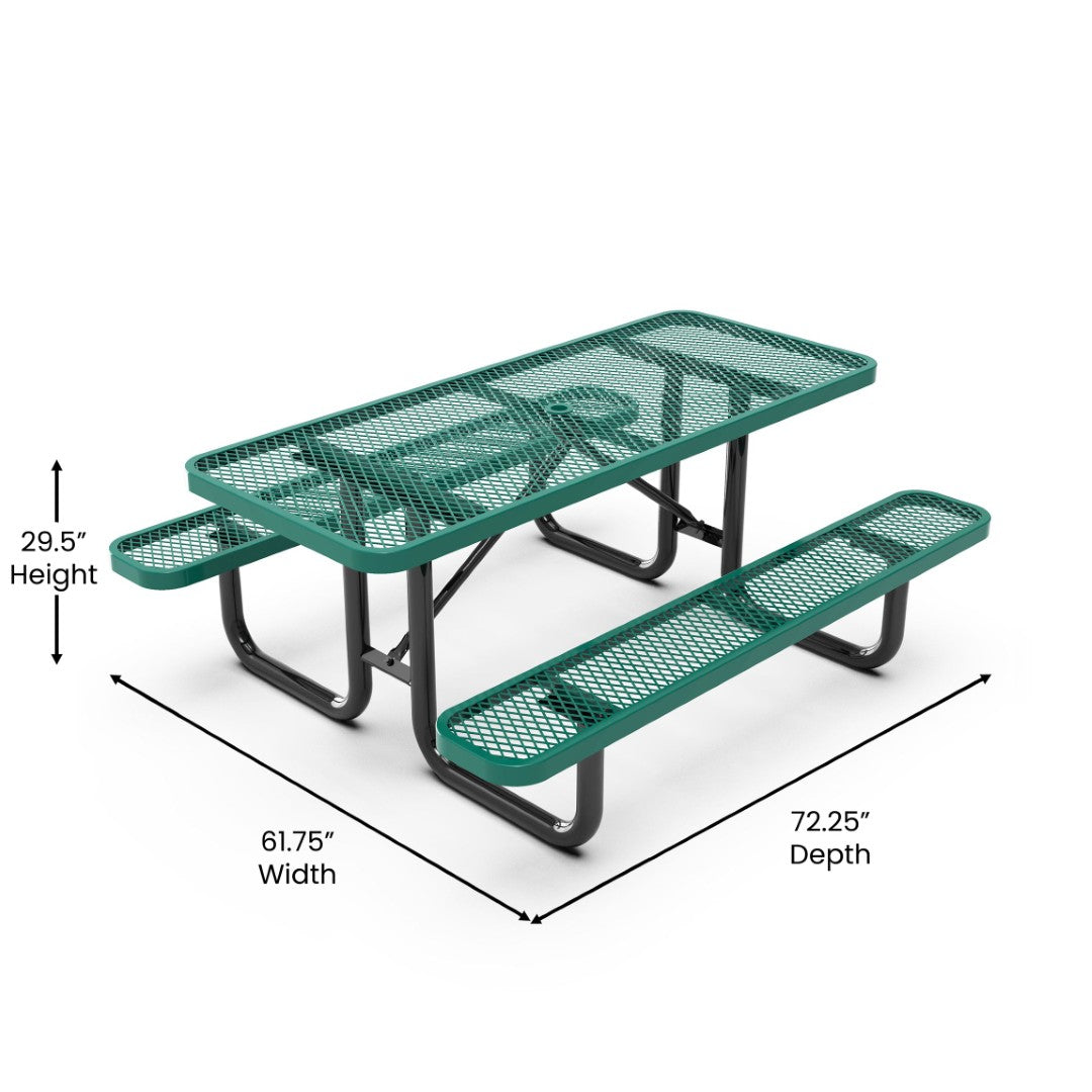 - 6' Commercial Grade Rectangular Expanded Metal Picnic Table for 6