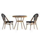 Bring the timeless charm of a Parisian sidewalk café to your commercial space with this durable, low-maintenance bistro set. Designed for frequent use in restaurants, hotels, bistros, and patios, the set pairs a tempered-glass tabletop with two breathable Textilene chairs on rust-resistant aluminum frames finished in a natural bamboo-look. It’s a practical, stylish solution for high-traffic seating that’s comfortable, easy to clean, and built to last.