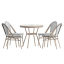 - Classic Commercial Grade Indoor/Outdoor Bistro Set with Table and Four Chairs