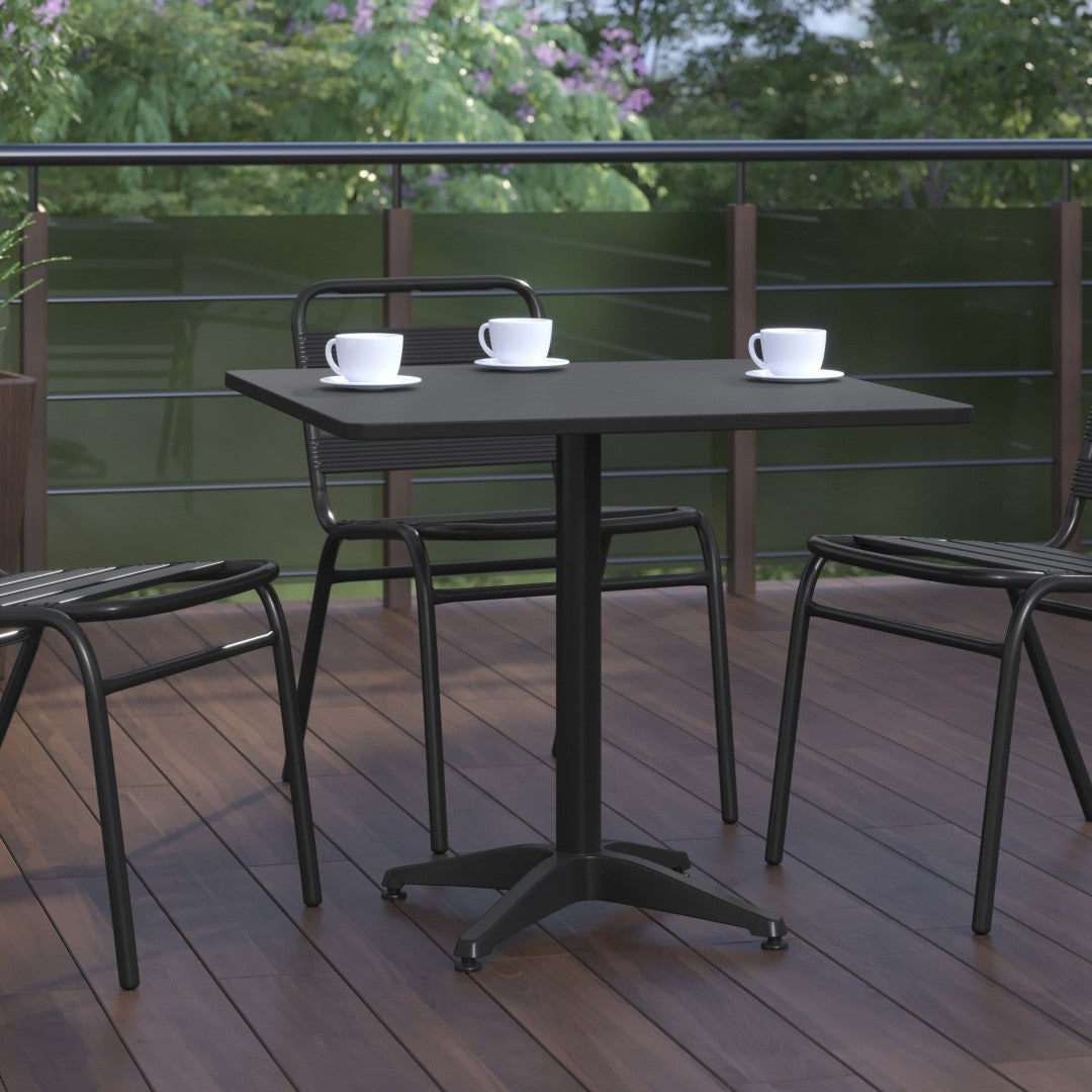 Elevate your indoor or outdoor seating area with a sleek, modern bistro table designed for both style and durability. This black metal table blends a smooth stainless-steel top with a sturdy aluminum column and base, making it an ideal choice for patios, cafes, restaurants, hotels, and homes seeking a contemporary, low-maintenance surface for dining, drinks, or casual conversation.