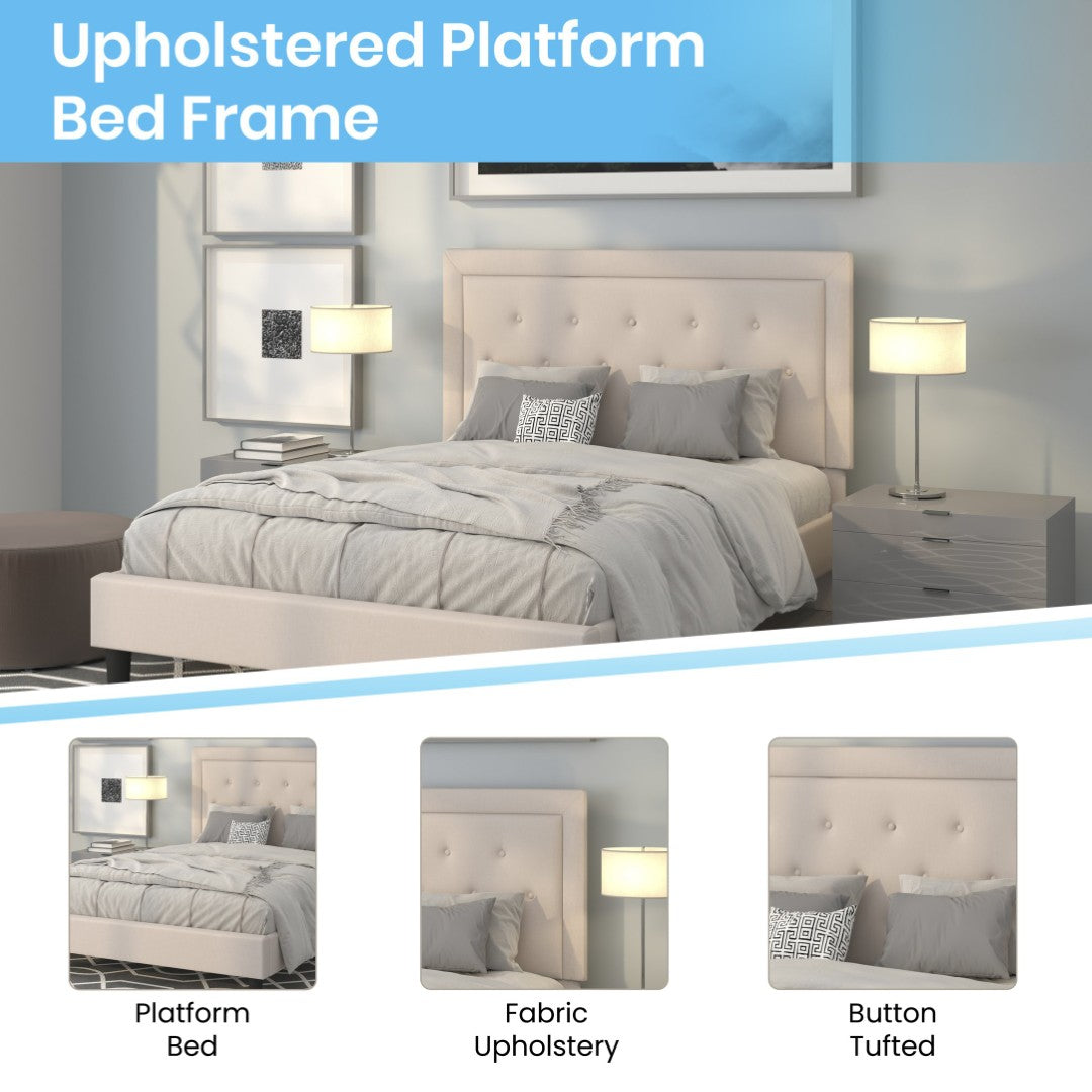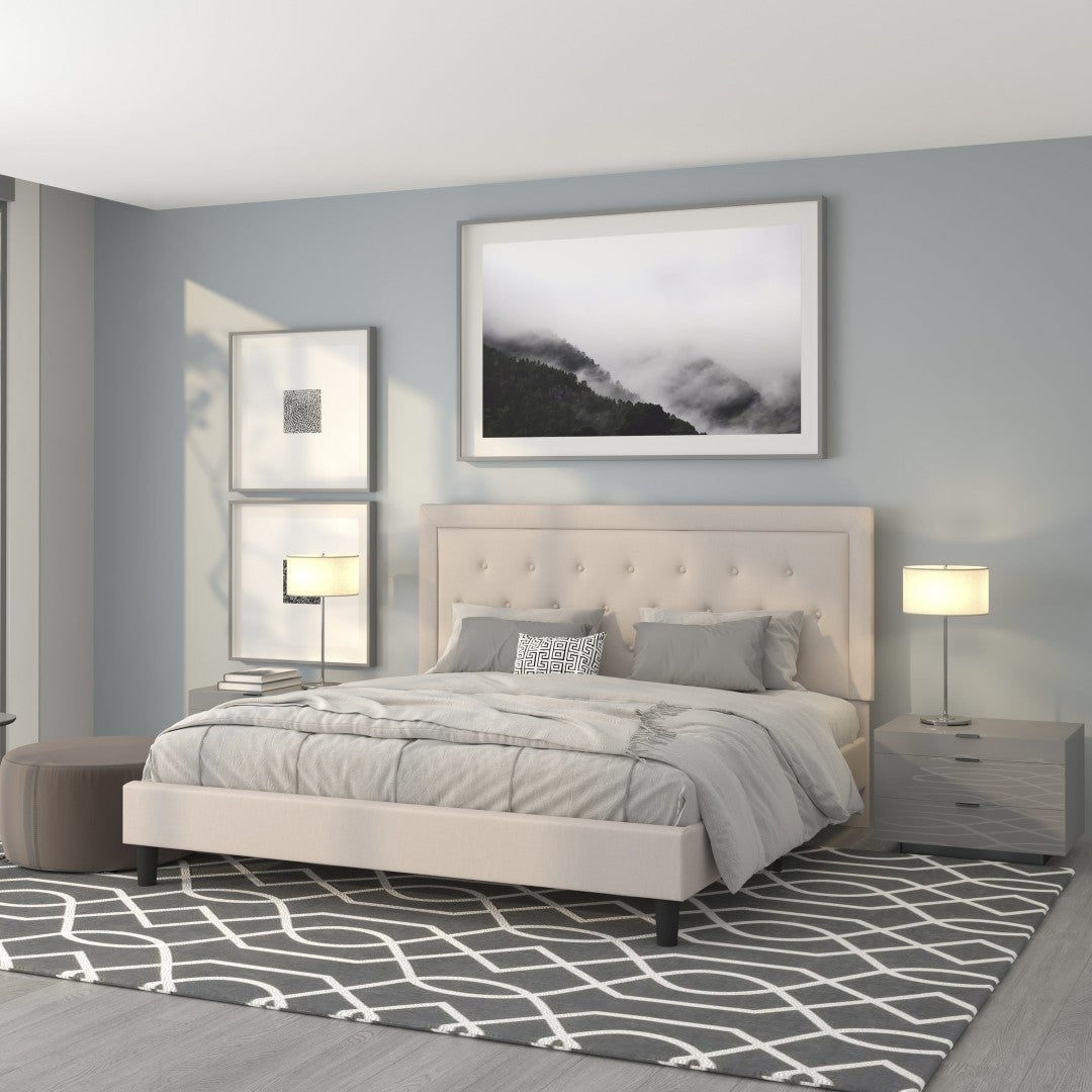 - Headboard: Button-tufted, embedded outline design provides subtle texture and visual interest