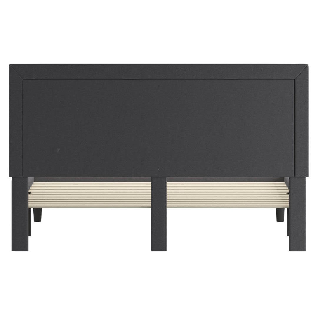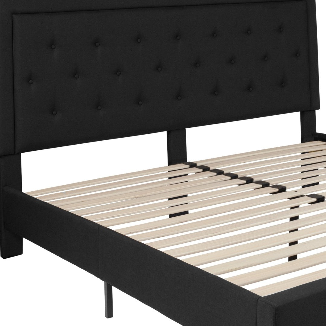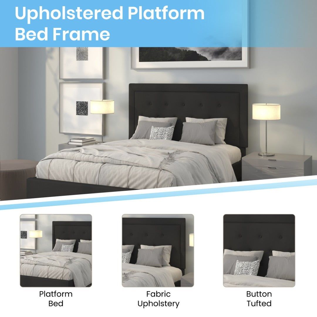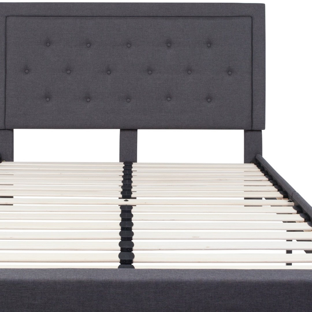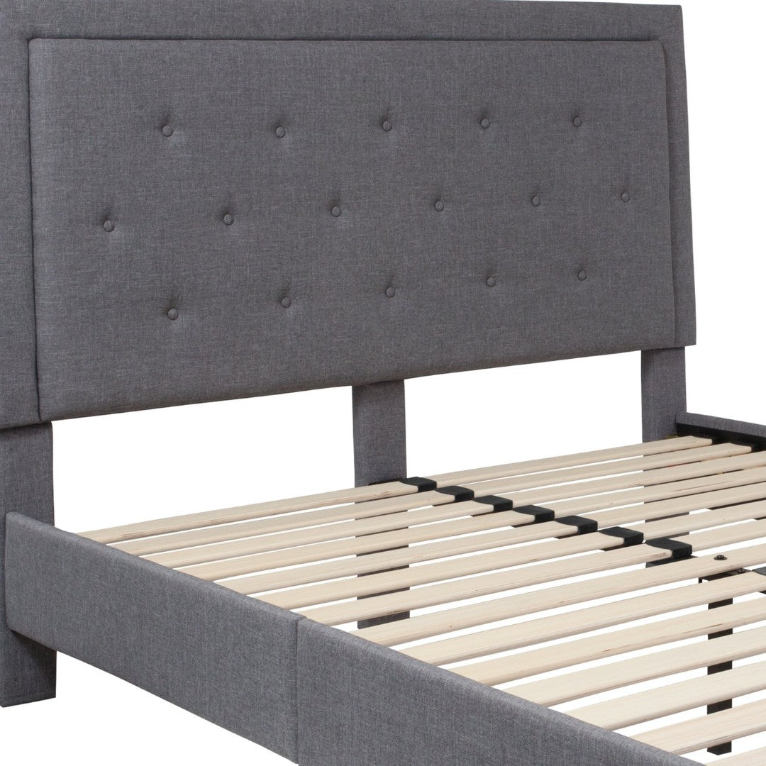 Enjoy a serene, stylish retreat with this modern low-profile platform bed. Thoughtfully designed with button-tufted upholstery and an outlined headboard, it balances contemporary flair with everyday comfort. The sturdy slat system and center support leg eliminate the need for a box spring, while a modest underbed clearance keeps the room feeling open and easy to maintain.