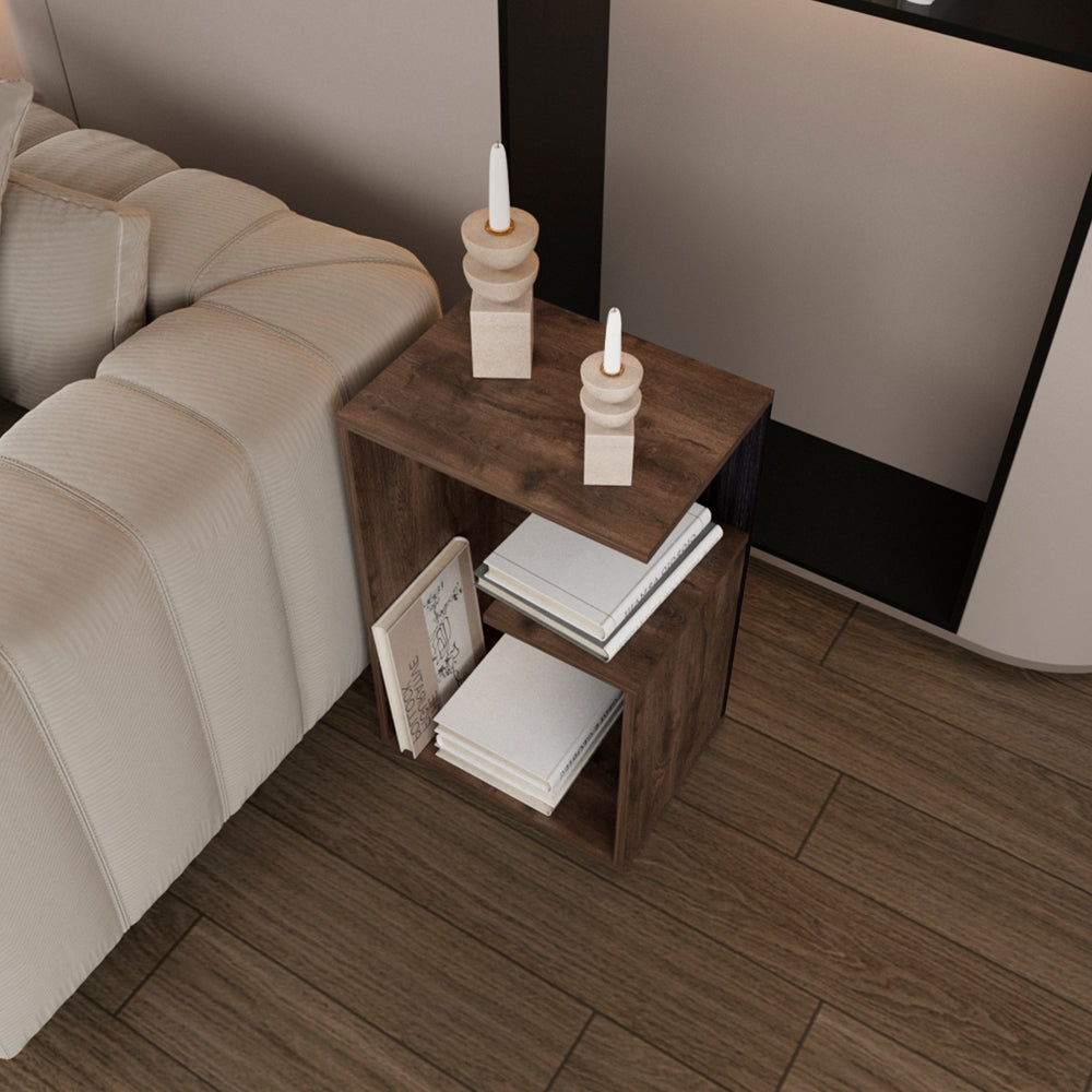 A compact, contemporary side table that brings practical storage and understated style to living rooms, bedrooms, or entryways. The Sallis side table in dark brown is engineered for everyday use—ideal for displaying a lamp, holding books, or keeping small essentials within reach—while its open-shelf silhouette keeps the look light and modern.