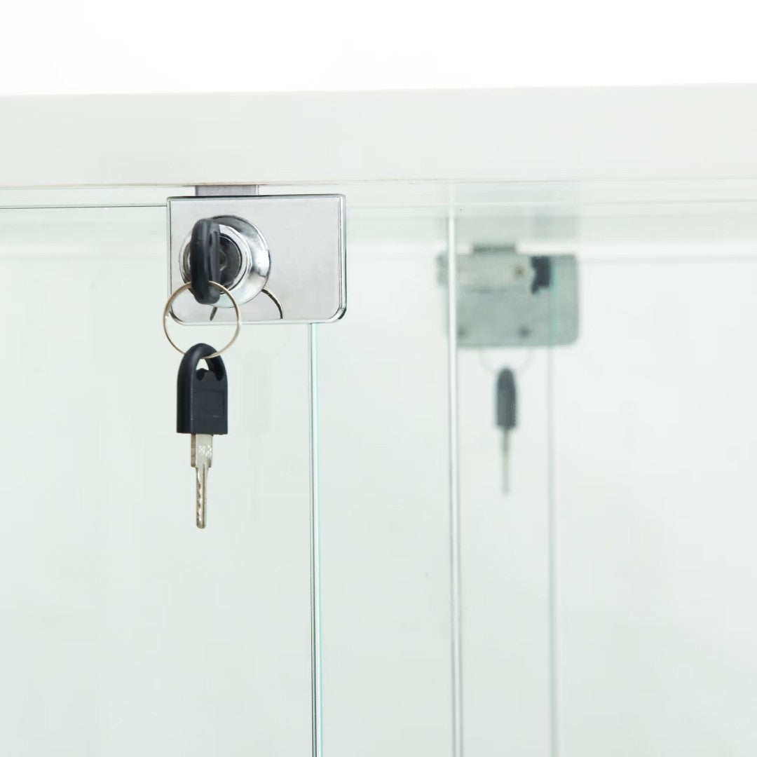 Elevate your living room, bedroom, corridor, or office with this elegant and secure tempered glass display cabinet. Designed to showcase collectibles, liquor, files, or decor, it combines safety-grade tempered glass, mirrored backing, and smart LED lighting to create a striking focal point while protecting and organizing your belongings. Thoughtful features like caster mobility, a door lock, and easy assembly make it practical for both residential and professional spaces.