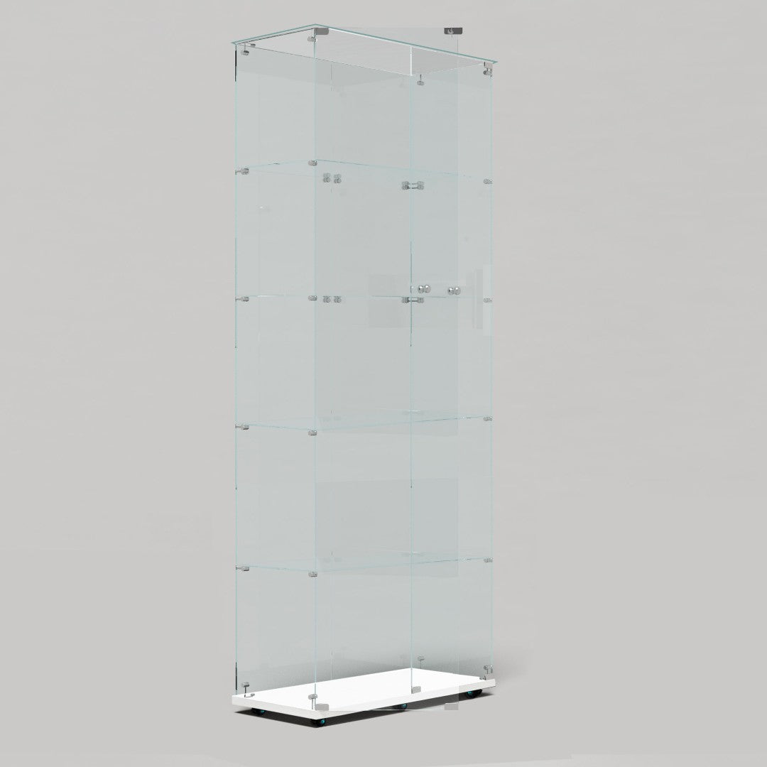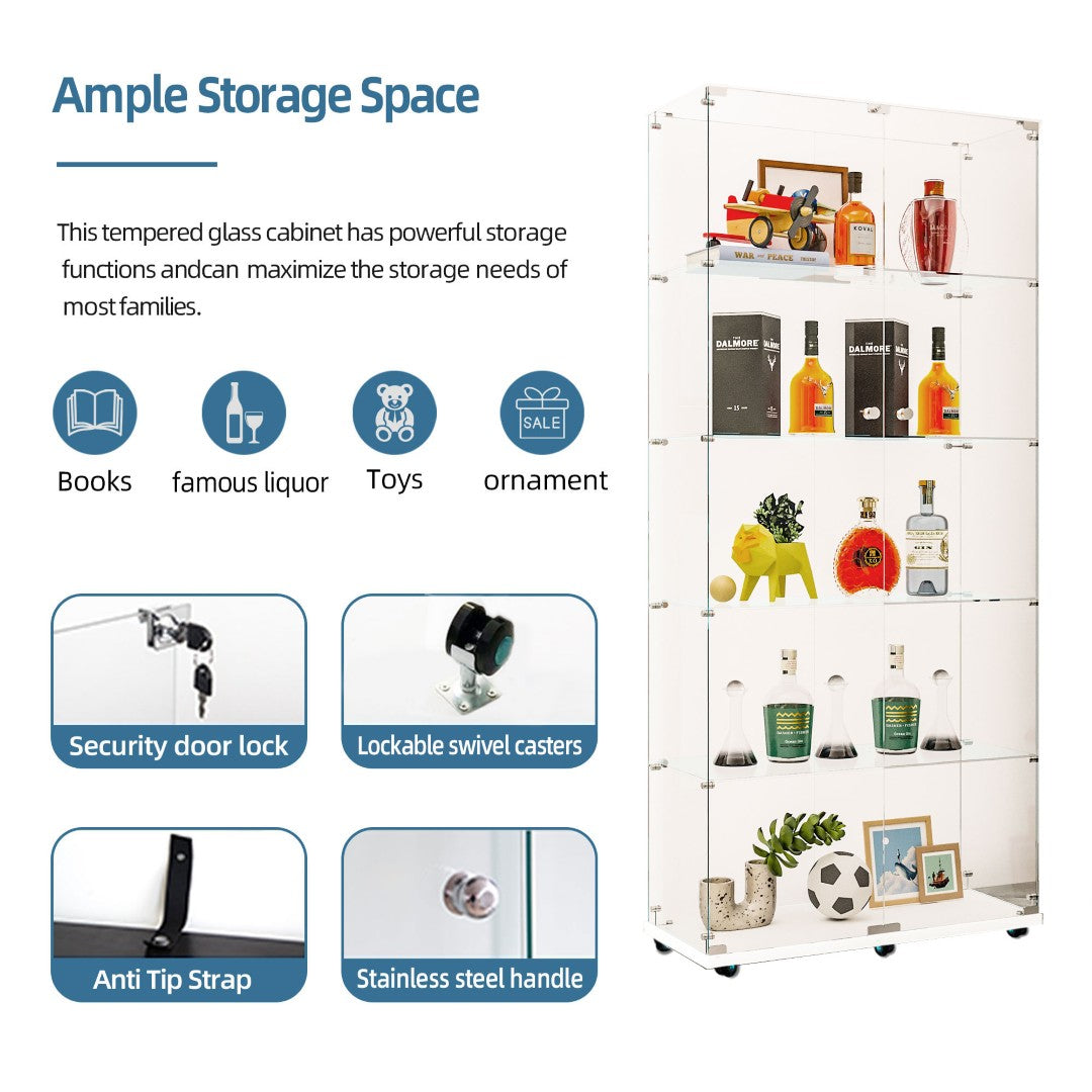 - Tempered Glass Display Cabinet: Measures74.61" (H) x30.91" (L) x13.58" (W), with an overall weight capacity of 110 lbs, each tempered glass shelf can hold up to 11 lbs,Color: white