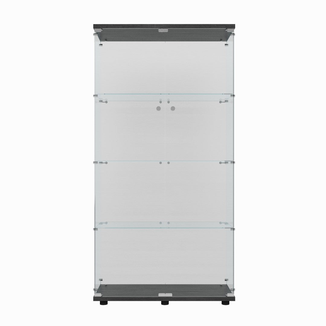 - Tempered Glass Display Cabinet: Measures64.69" (H) x30.91" (L) x13.58" (W), with an overall weight capacity of 110 lbs, each tempered glass shelf can hold up to 11lbs ,Color: black