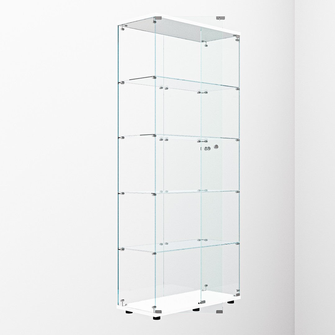 - Materials: Durable particle board frame with tempered glass doors and shelves for a clear, elegant display.