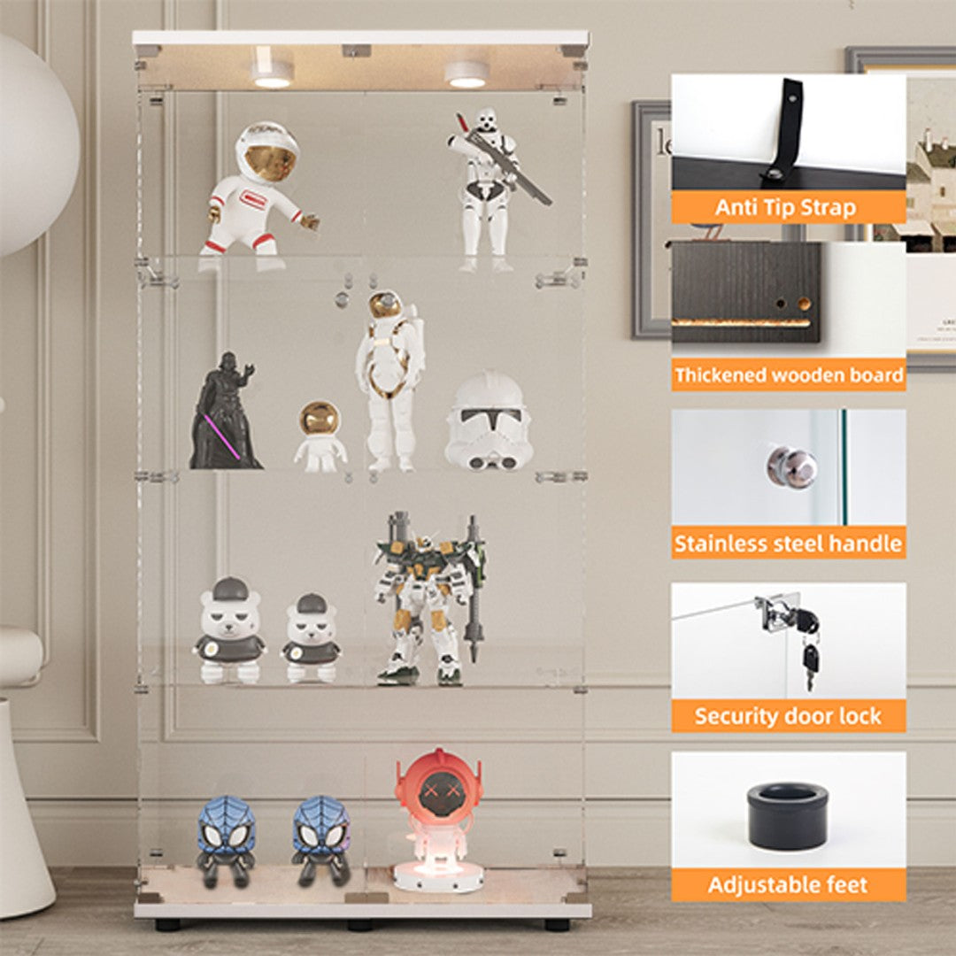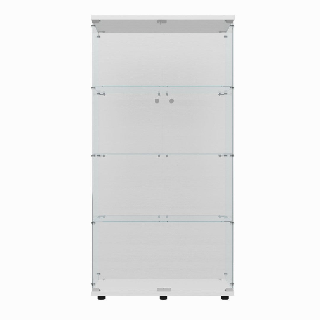 - Tempered Glass Display Cabinet: Measures64.69" (H) x30.91" (L) x13.58" (W), with an overall weight capacity of 110 lbs, each tempered glass shelf can hold up to 11lbs , Color: white