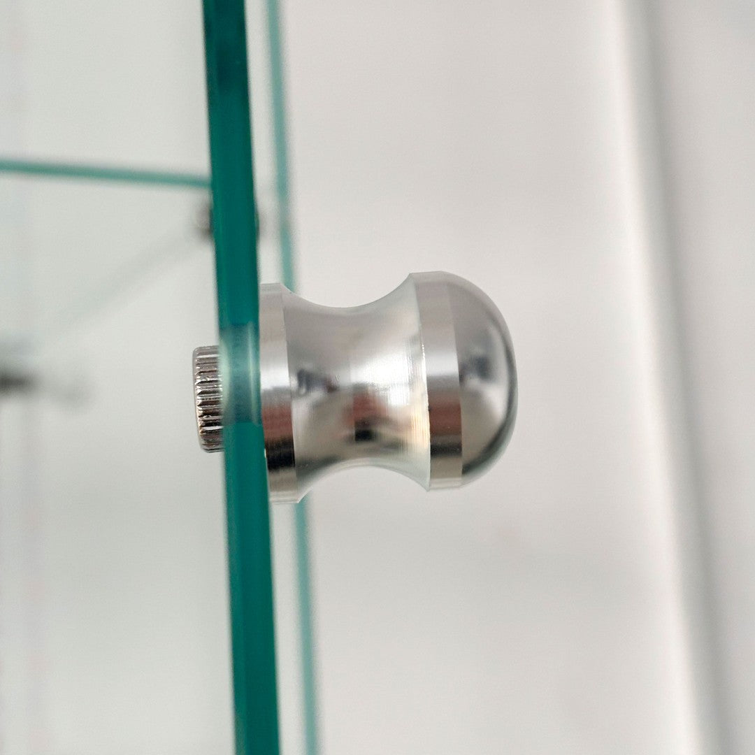 - Load capacity: Total cabinet capacity 110 lbs; each tempered glass shelf supports up to 11 lbs.