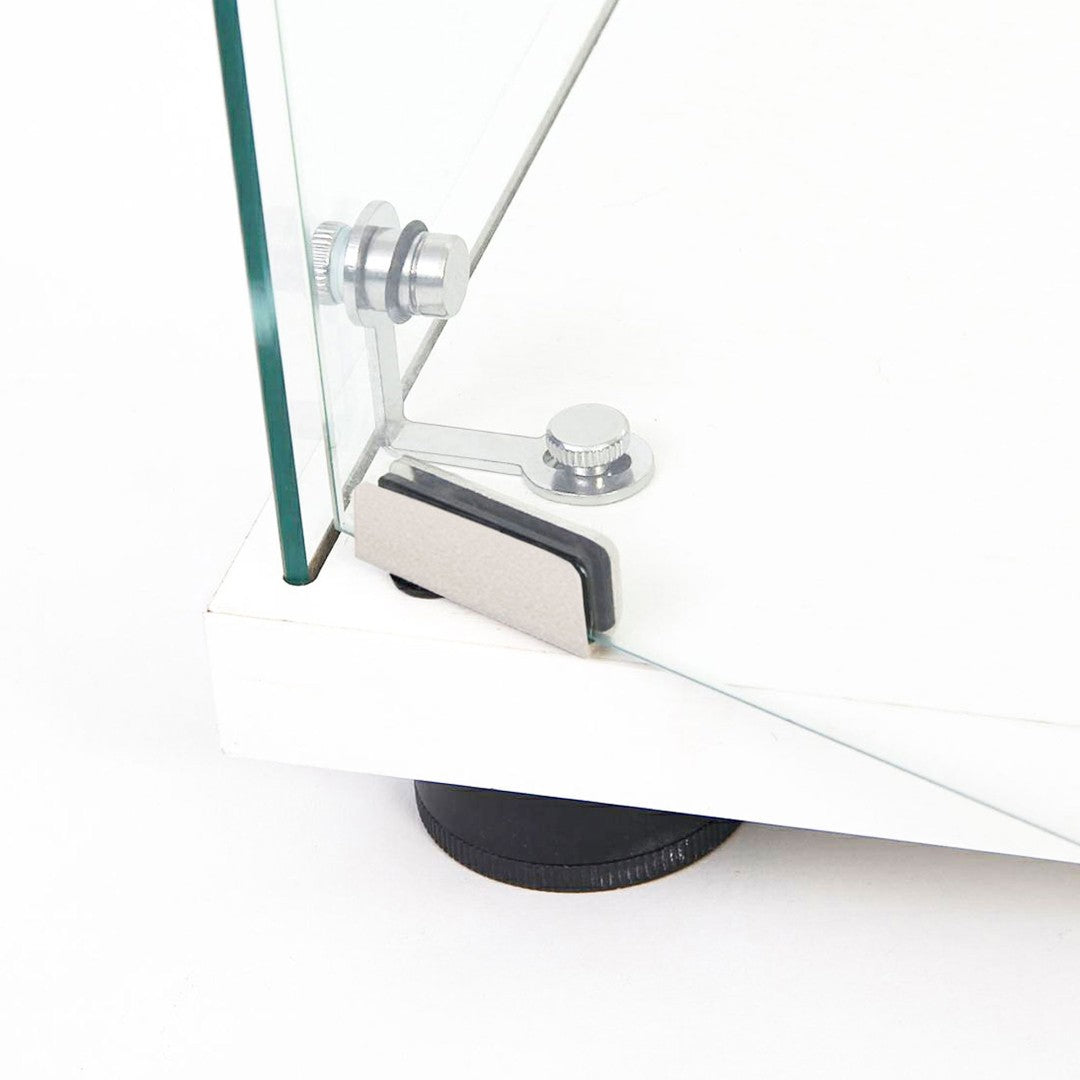 - Materials: Tempered glass panels for safer breakage resistance; durable particle board frame in white finish.