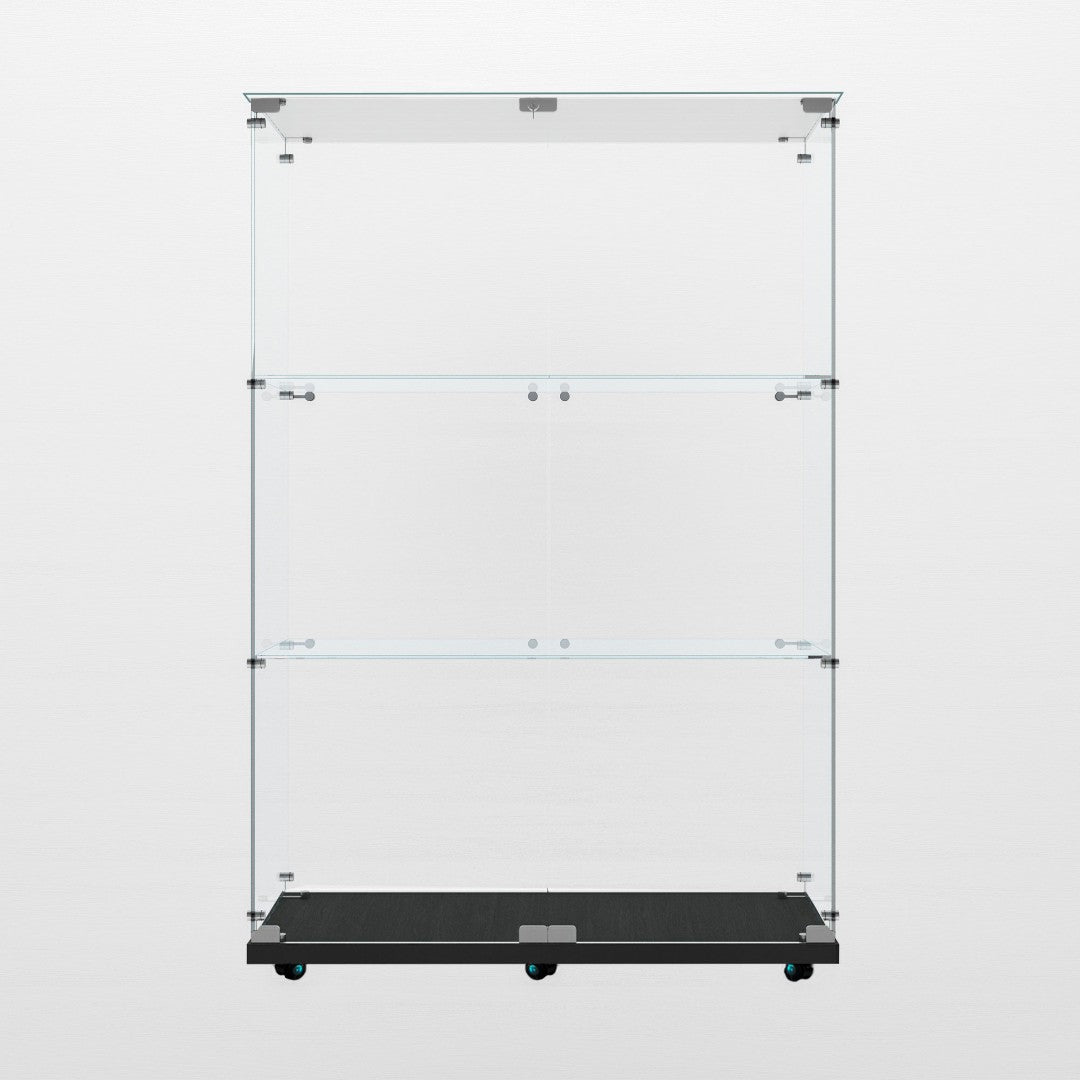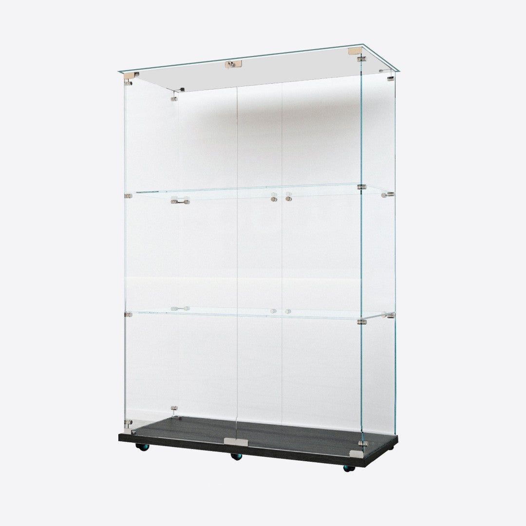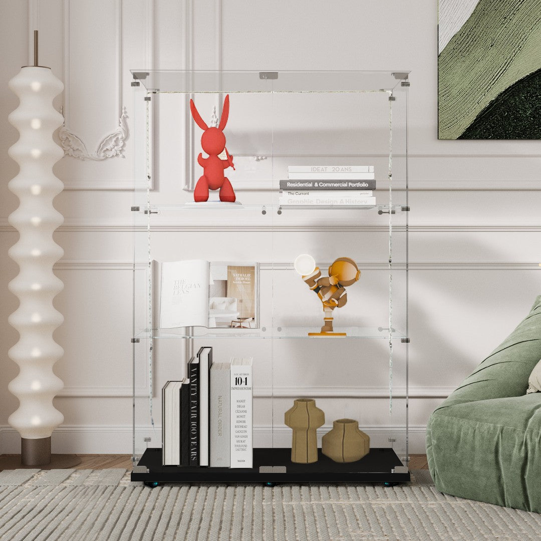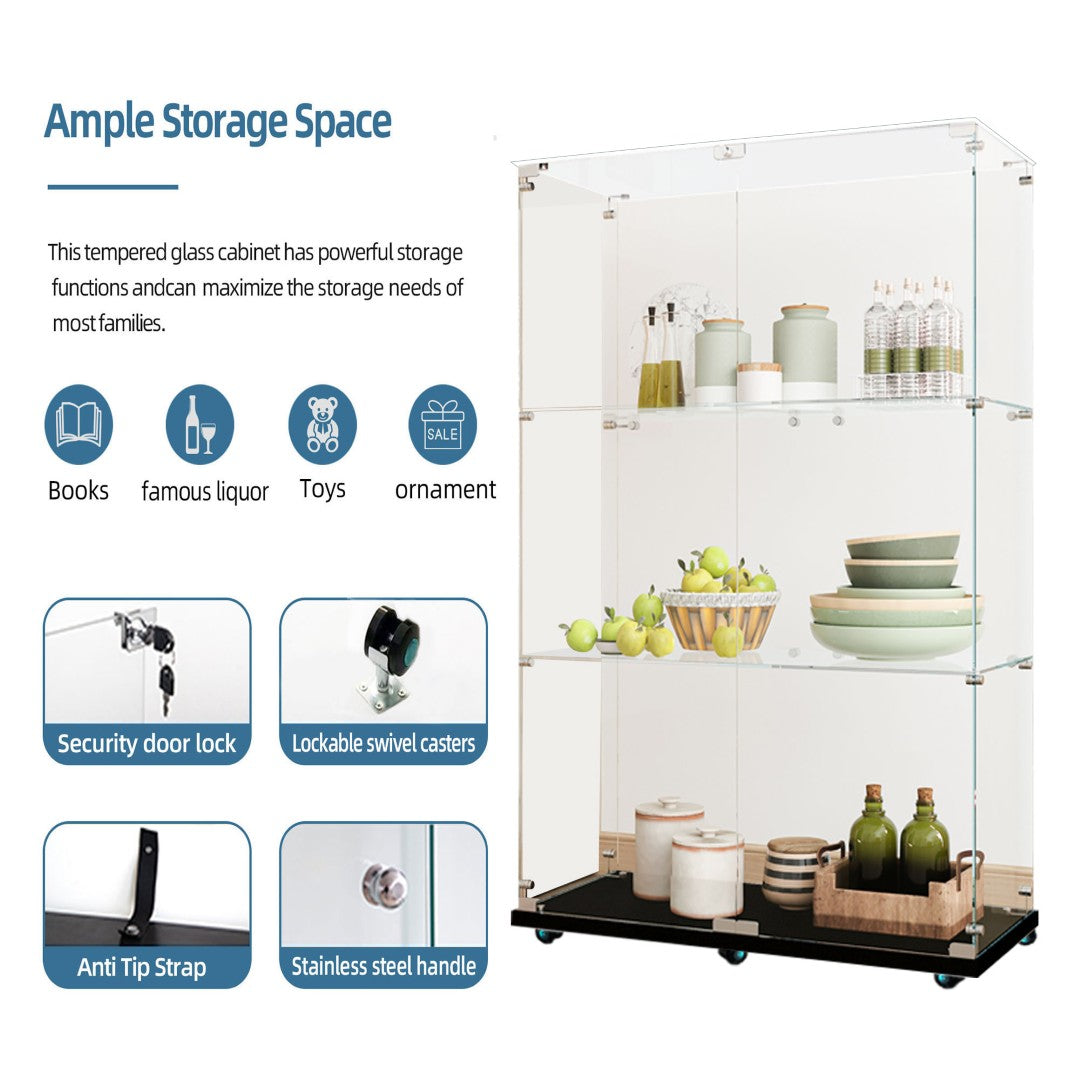 - Tempered Glass Display Cabinet: Measures 49.88" (H) x 15.67" (L) x30.91" (W), with an overall weight capacity of 110 lbs, each tempered glass shelf can hold up to 11 lbs,Color: Black
