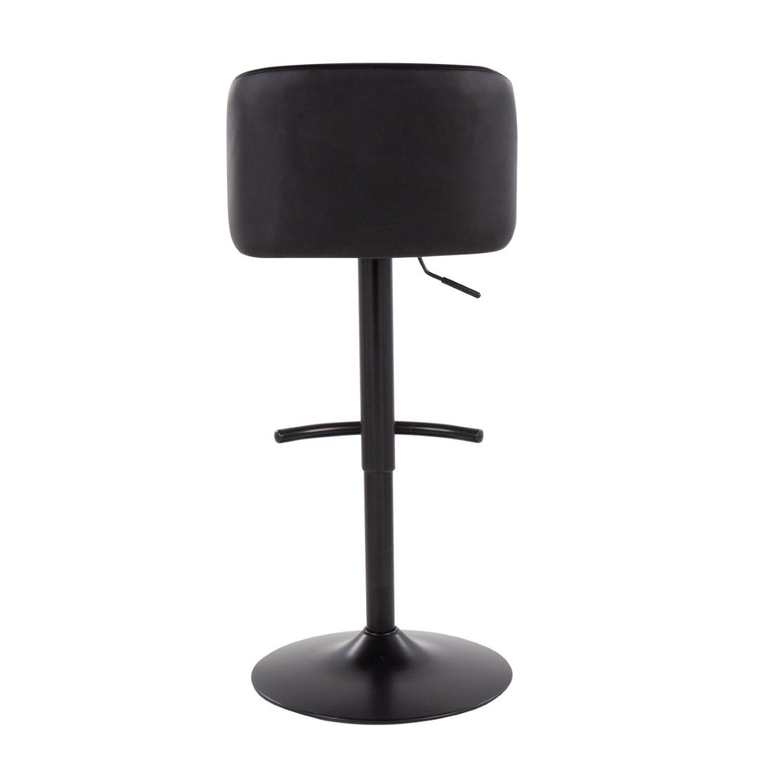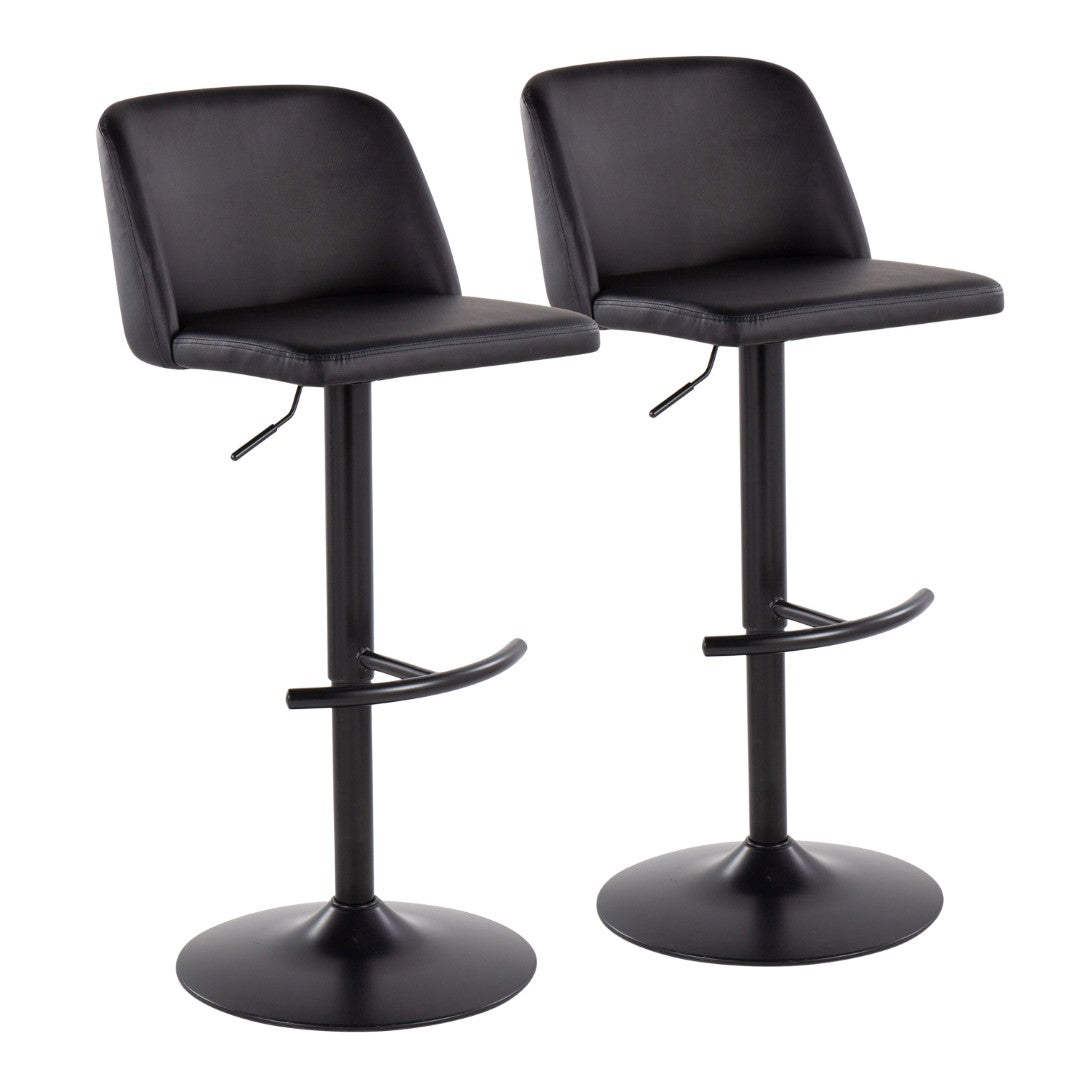 - Comfort, modern simplicity, and classic lines define the appealing look of the Toriano Adjustable Bar Stool by LumiSource. A padded upholstered seat sits on an adjustable contemporary inspired pedestal base with a built-in footrest. Available in various colors, choose the one that suits your space best!