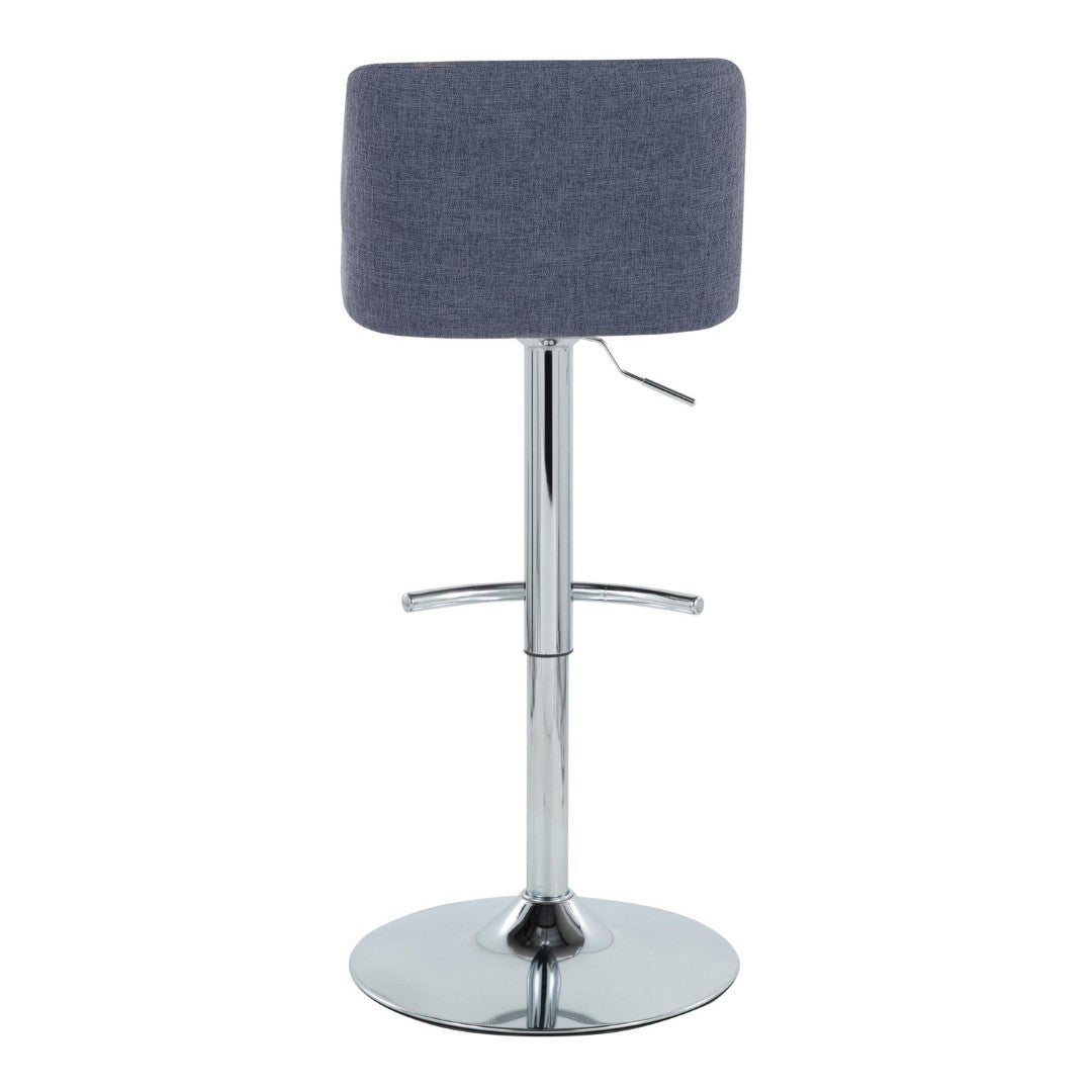 - Comfort, modern simplicity, and classic lines define the appealing look of the Toriano Adjustable Barstool by LumiSource. A padded upholstered swivel seat sits on an adjustable contemporary inspired pedestal base with a built-in footrest. Available in various colors, choose the one that suits your space best!