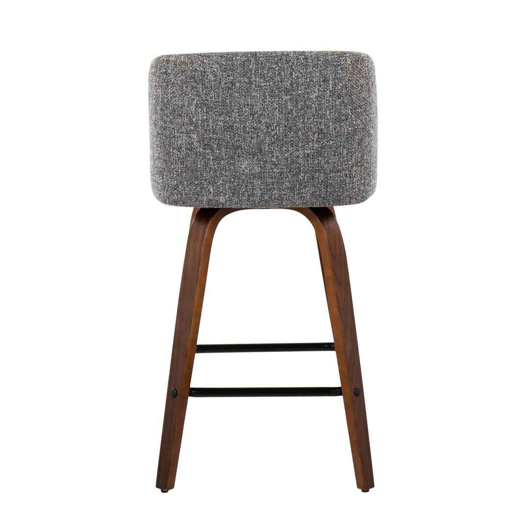 Bring mid-century modern warmth and everyday comfort to your kitchen or bar area with the Toriano counter stool. Clean lines, a padded swivel seat, and bent walnut-finish legs combine with a square black footrest and Noise Grey fabric to create a versatile stool that complements contemporary and classic interiors alike. Sold as a set of two, these fixed-height stools deliver durable seating and a streamlined silhouette for casual dining and entertaining.